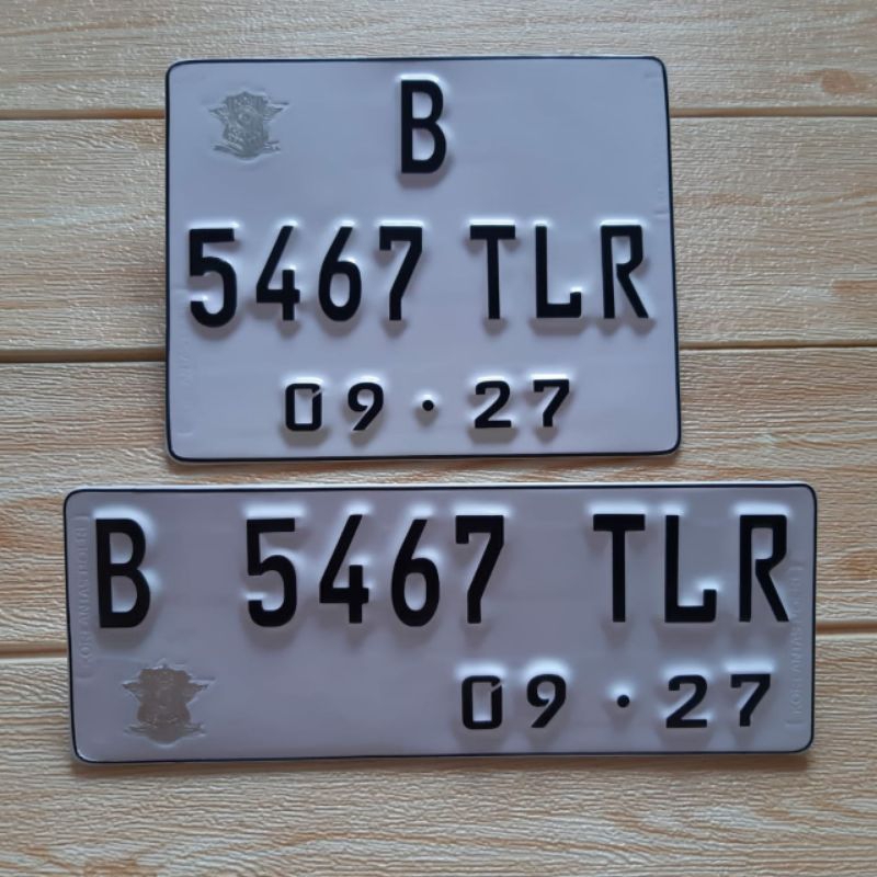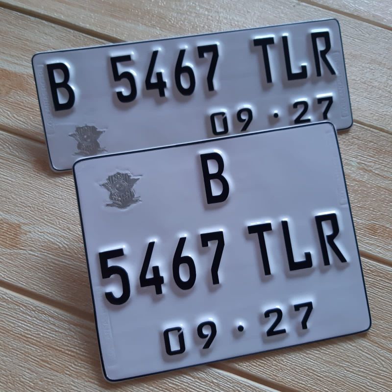 Plat nomor vespa berlapis buat tanam plat putih font baru berlogo korlantas polri sepasang 2pcs