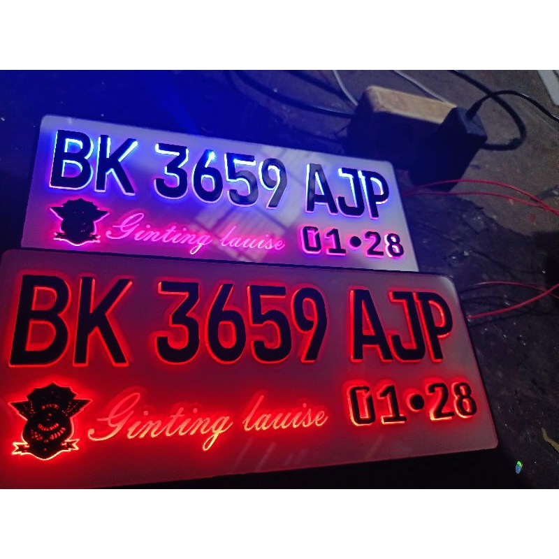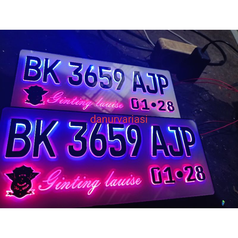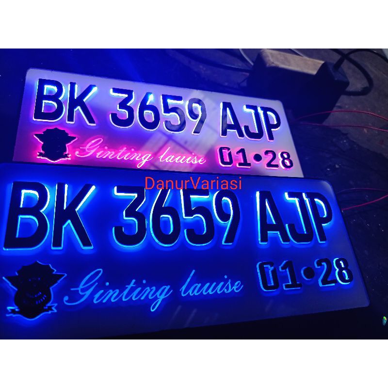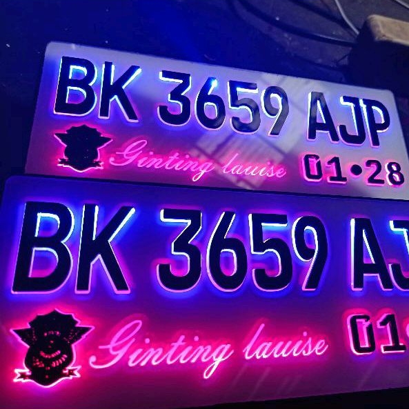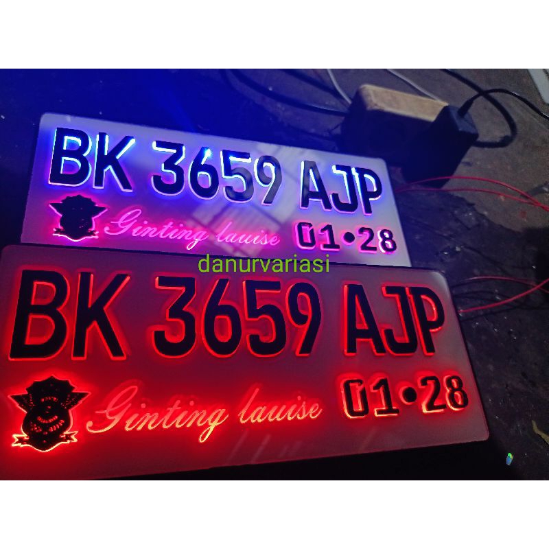 Plat Nomor Motor Timbul Nyala LED Waterpoof Lengkap Tinggal Pasang