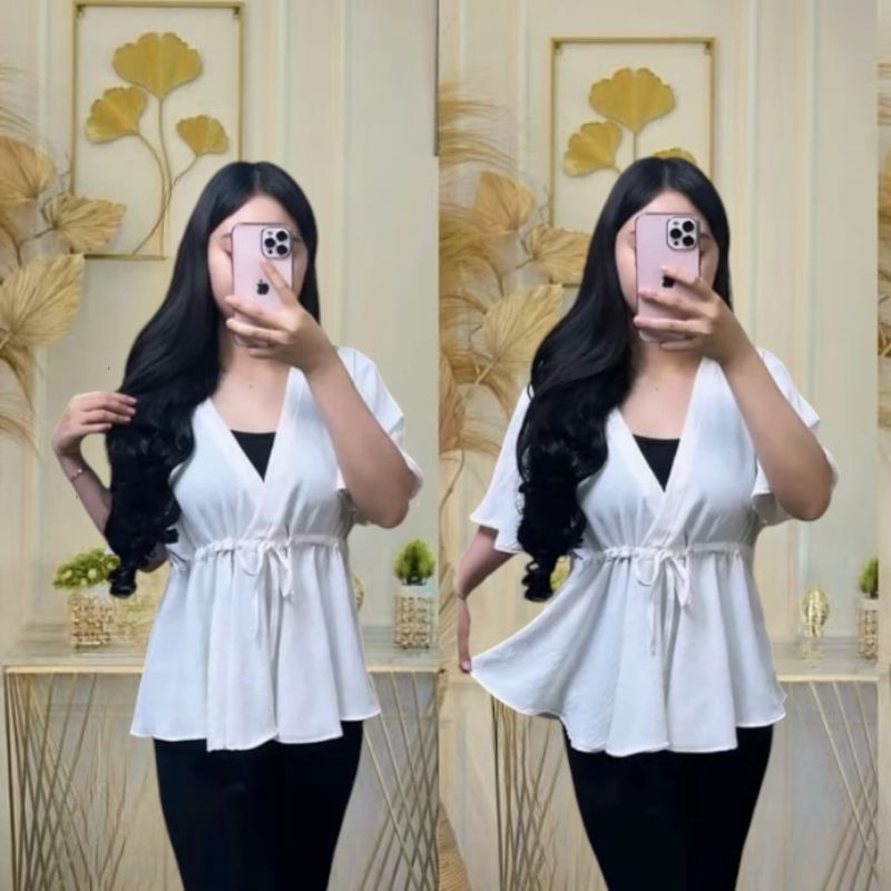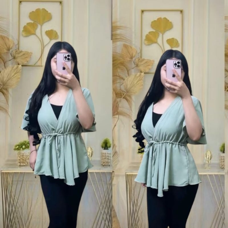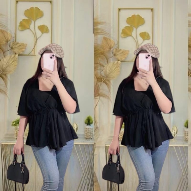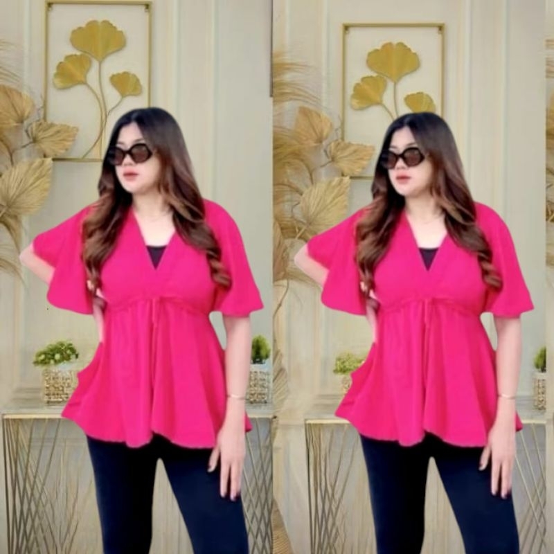 Blouse Wanita Kekinian Atasan Kemeja terbaru Lengan Pendek Blouse Crinkel Airflow