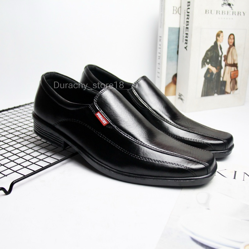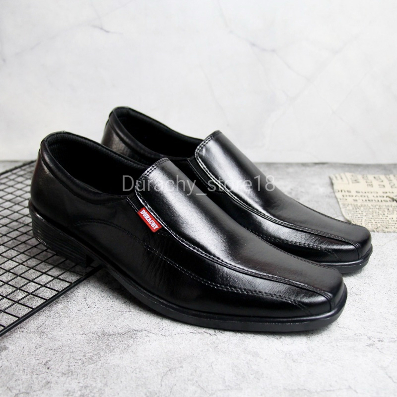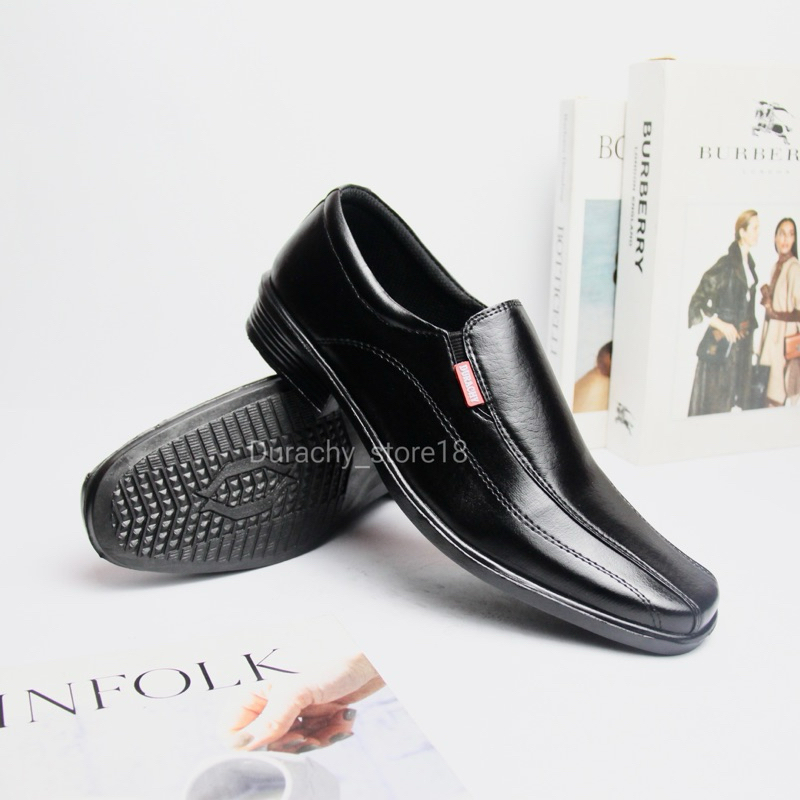 DURACHY Sepatu Pantofel Pria Slip On Formal Kerja Kulit Hitam