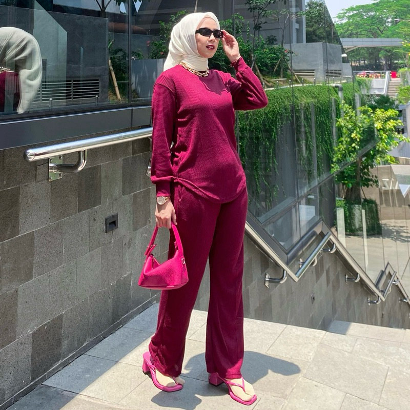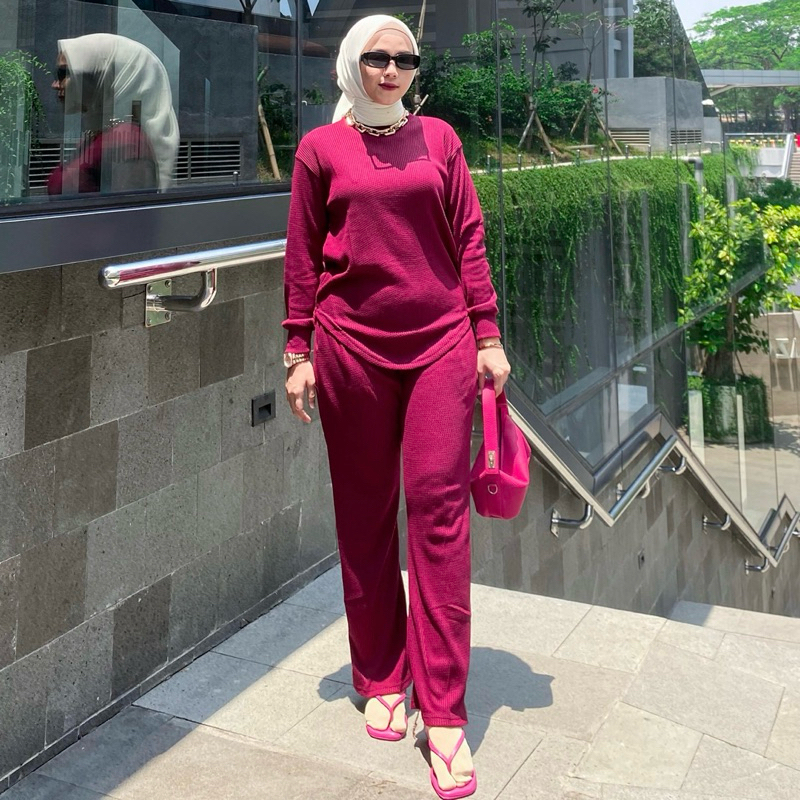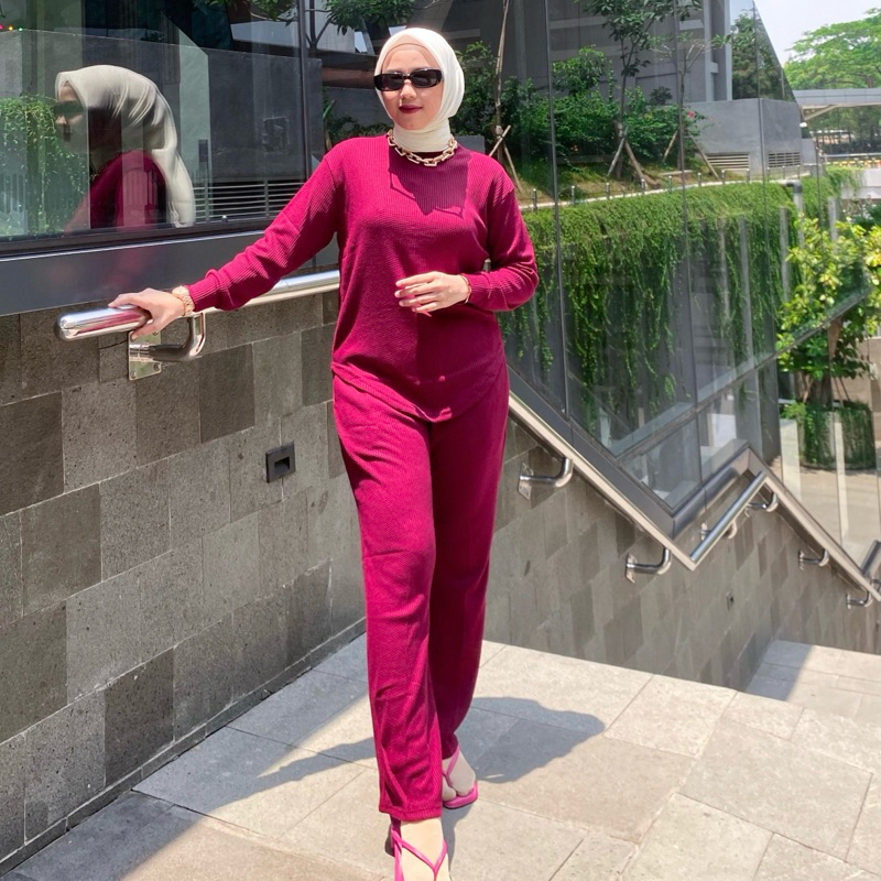 ONE SET WAFFLE/SETCEL/BAJU SETELAN WANITA KEKINIAN