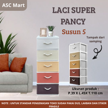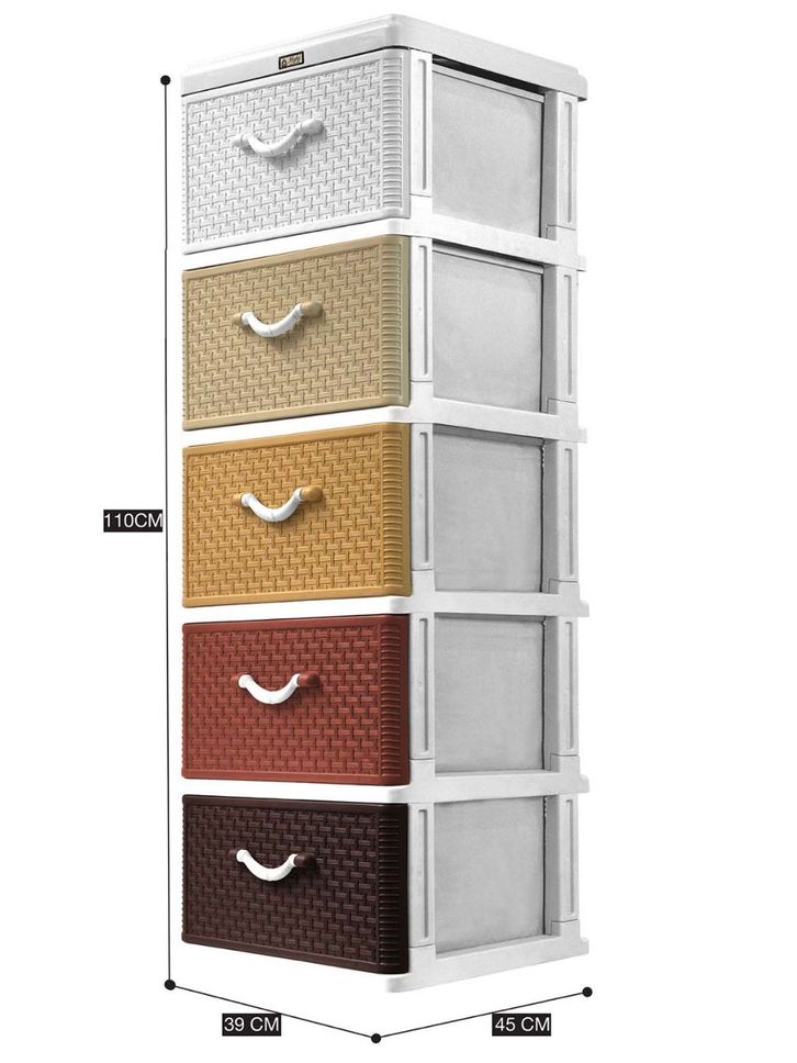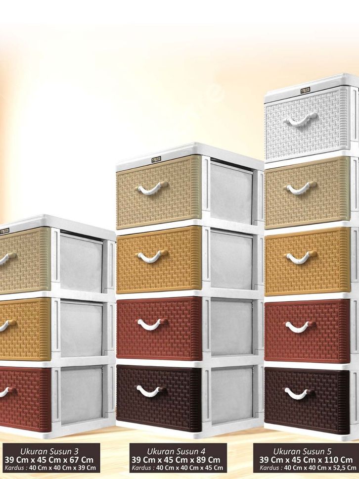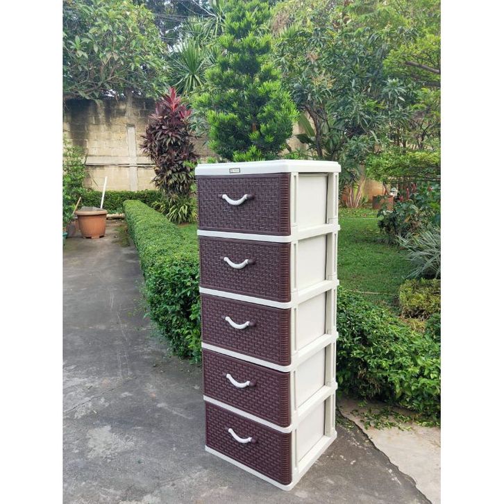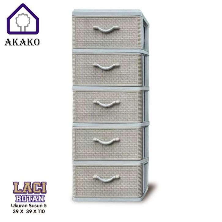 AKAKO - Lemari Pakaian Laci Plastik Motif Rotan Susun 5 - NEW ITEM (Code : LSM 5)