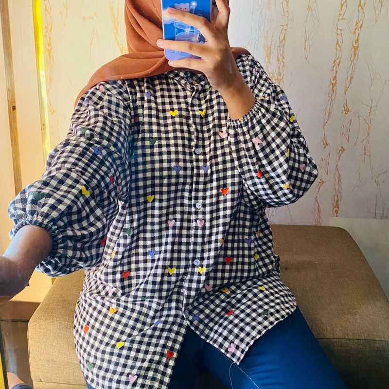 Blouse atasan rayon kerah sanghai lengan panjang balon