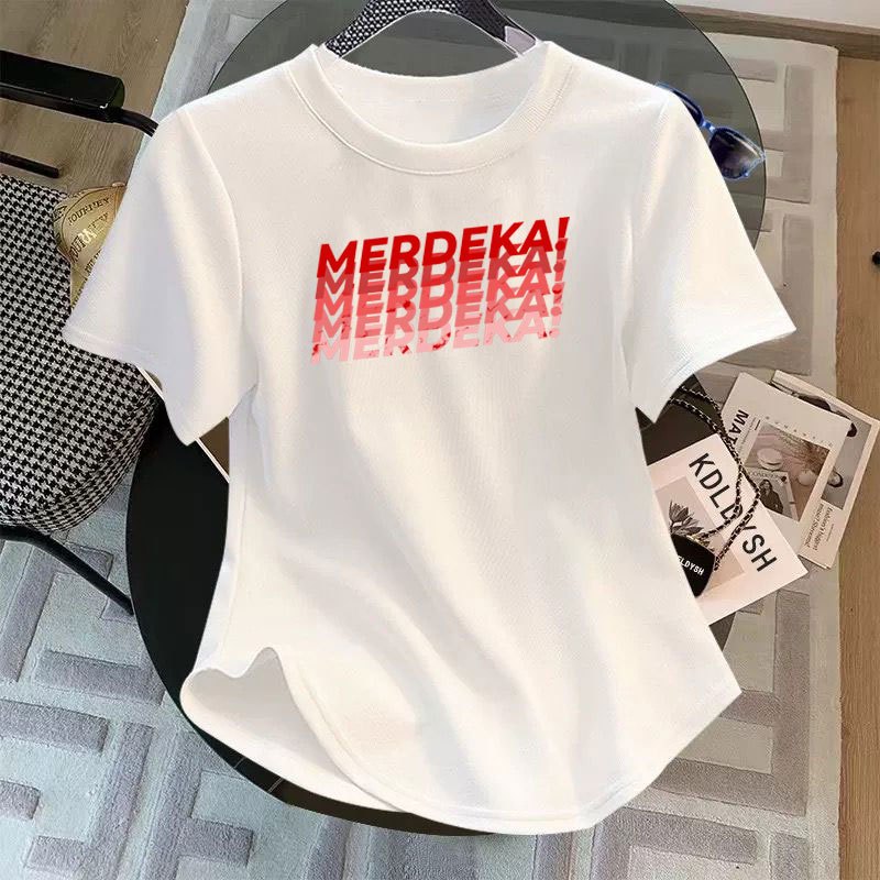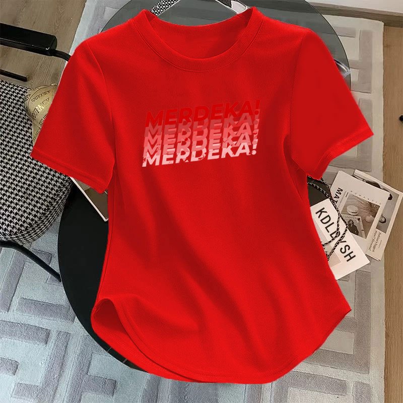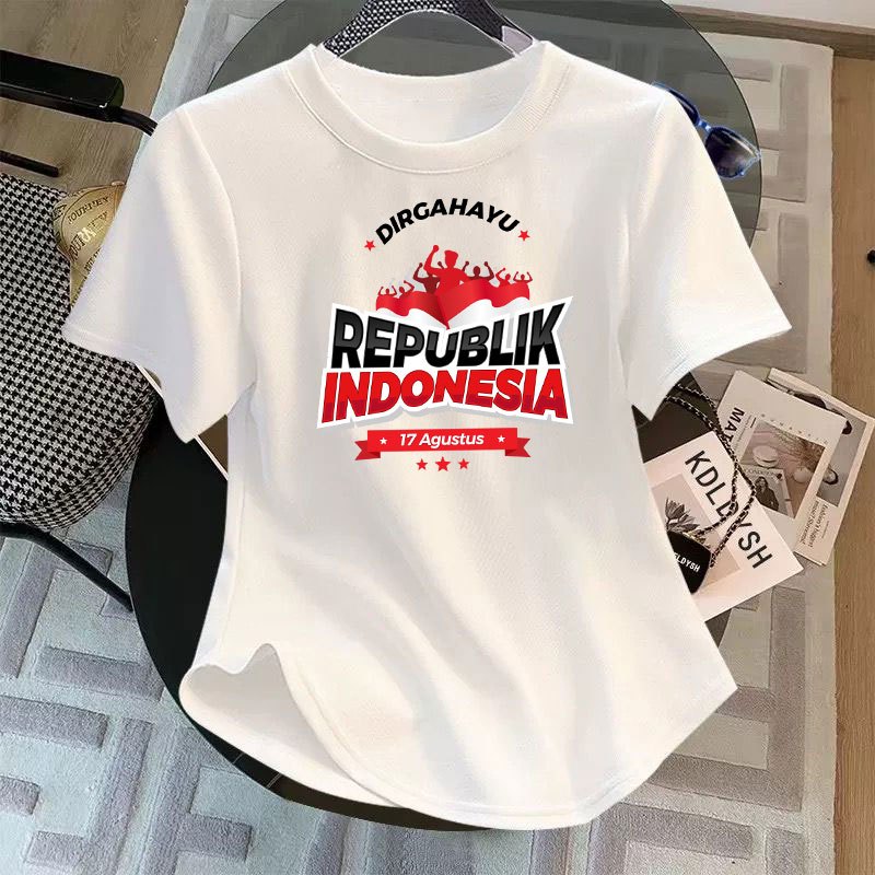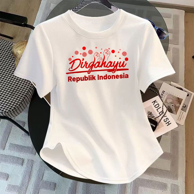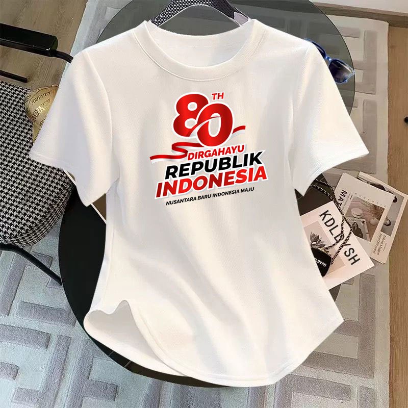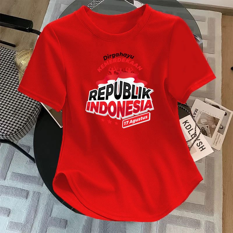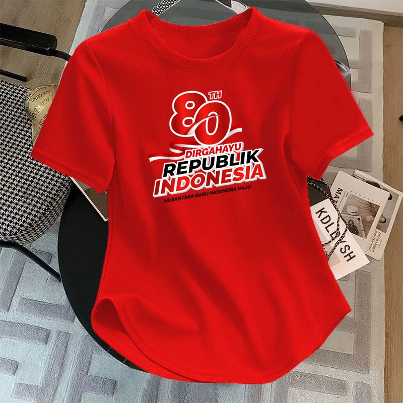 Baju Kaos Oval Wanita Dewasa 17 Agustus HUT RI 80 Kemerdekaan Dirgahayu Republik Indonesia Kaos Merah Putih