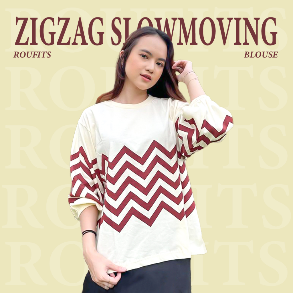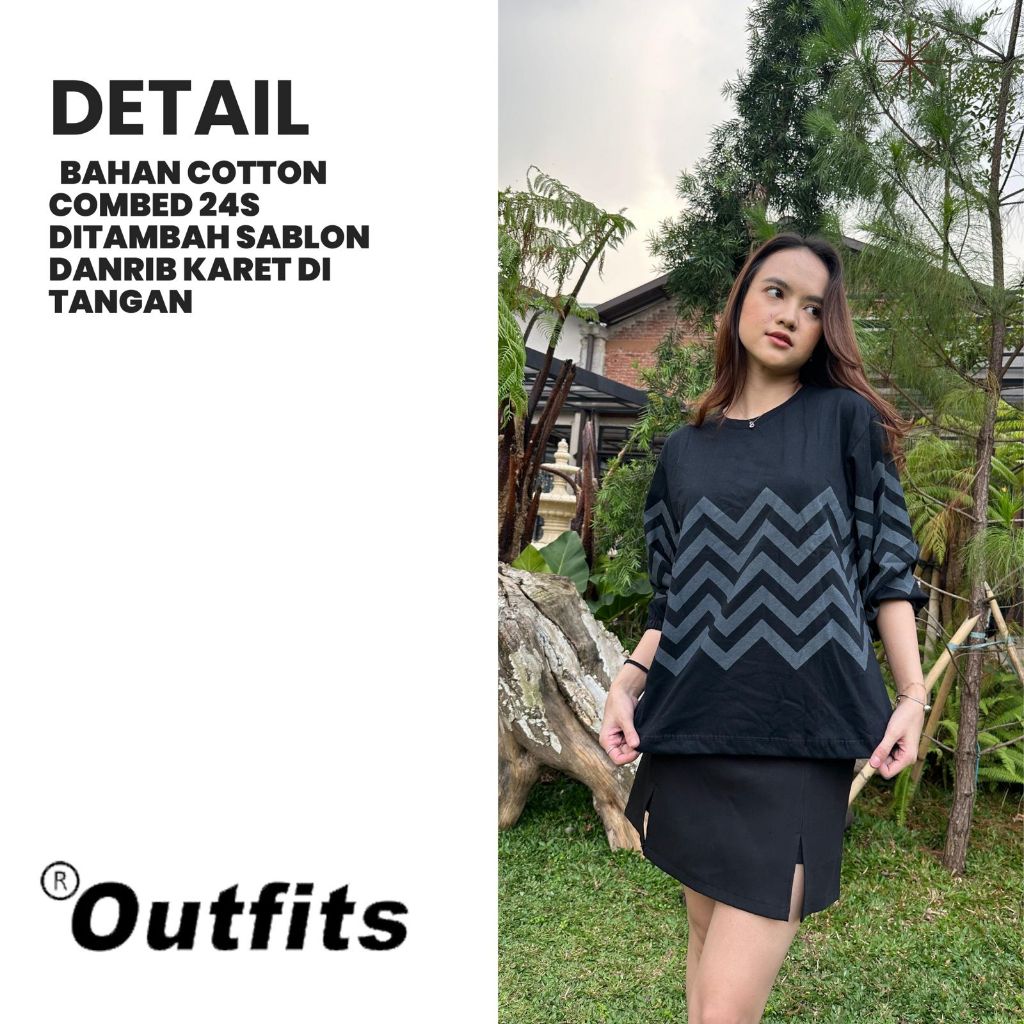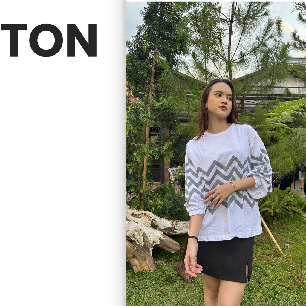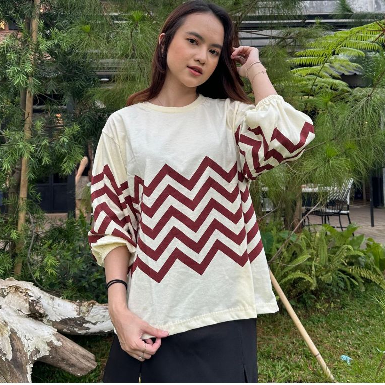 ROUTFITS - KAOS TSHIRT WANITA LENGAN PANJANG BLOUSE TANGAN BALON WITH MOTIF ZIGZAG BAHAN COTTON COMBED LEMBUT DAN N