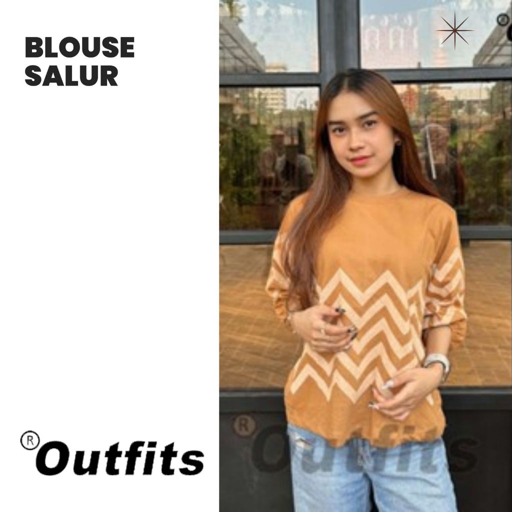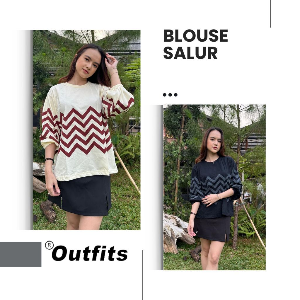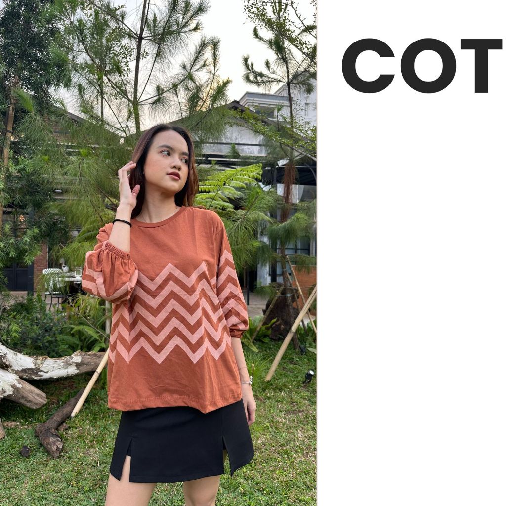 ROUTFITS - KAOS TSHIRT WANITA LENGAN PANJANG BLOUSE TANGAN BALON WITH MOTIF ZIGZAG BAHAN COTTON COMBED LEMBUT DAN N