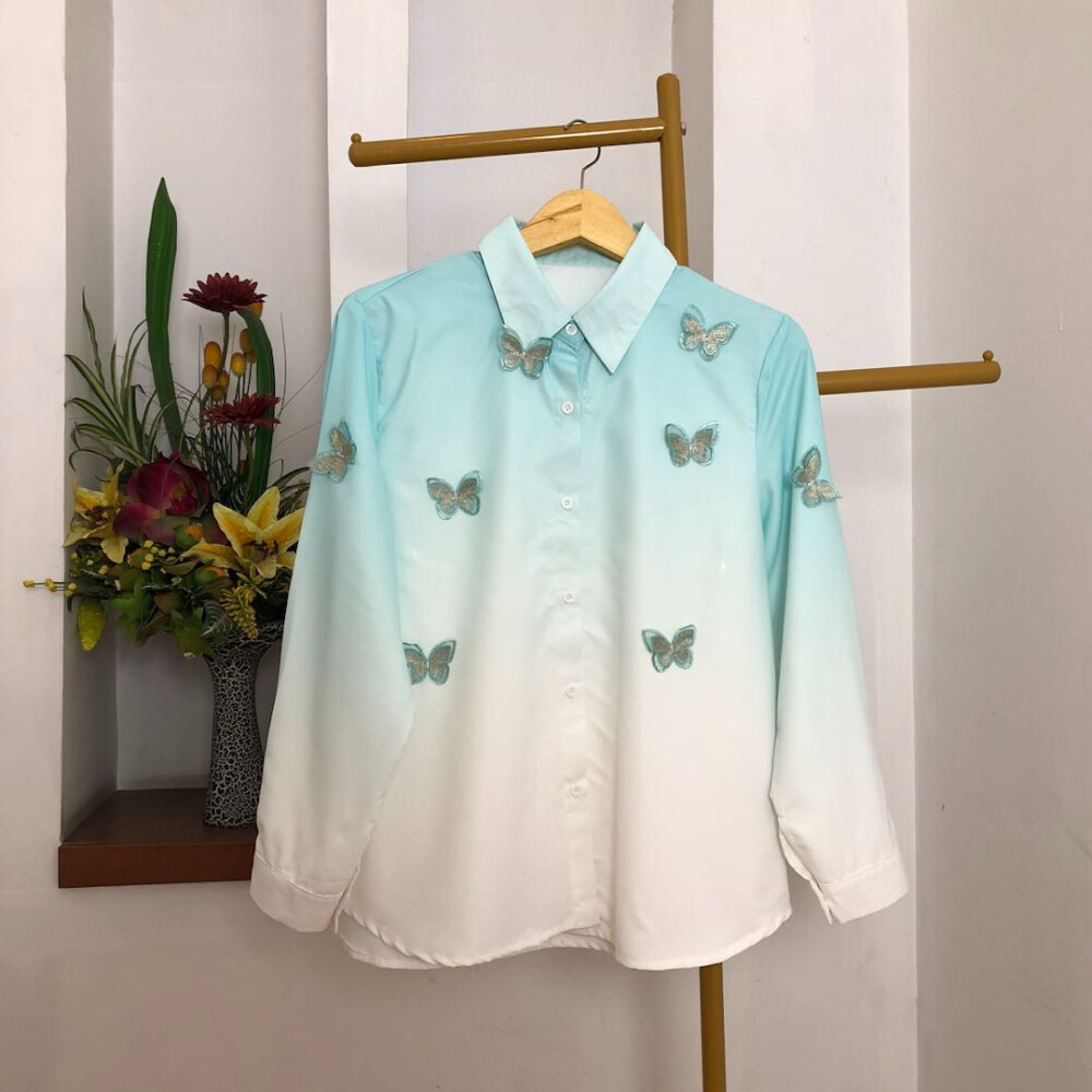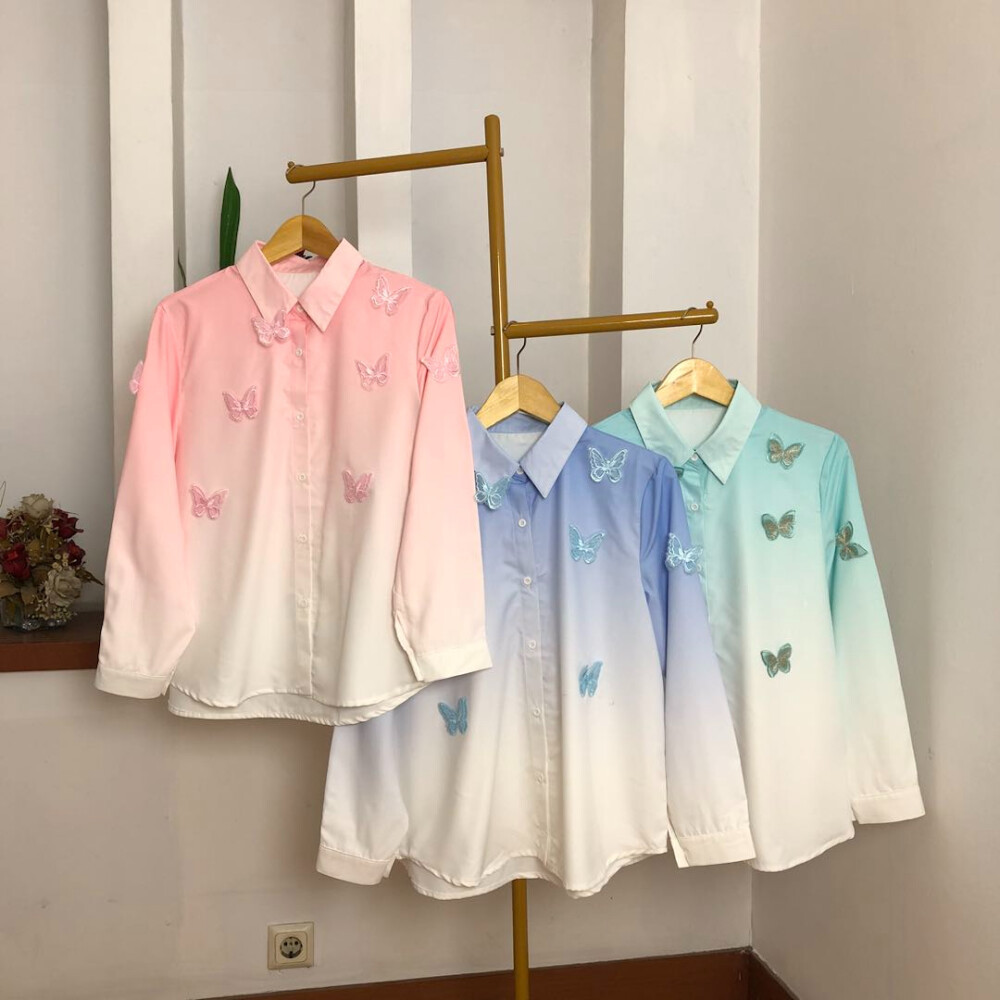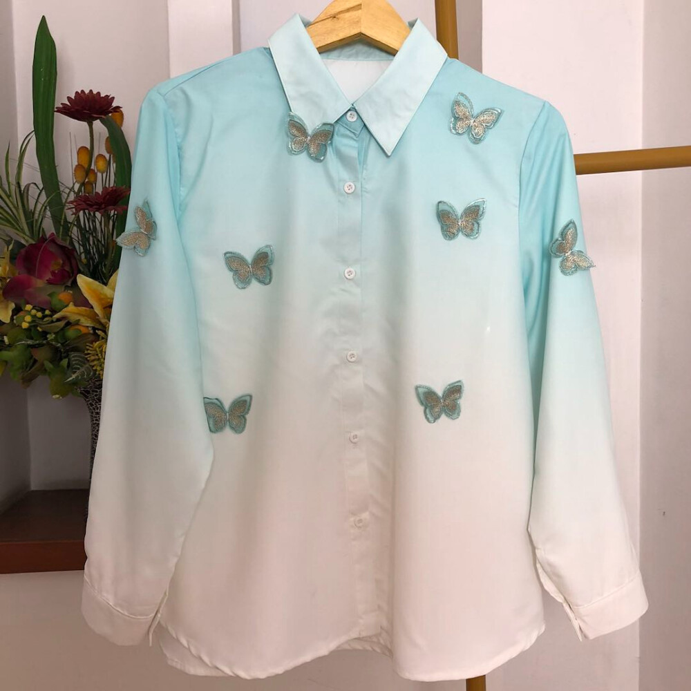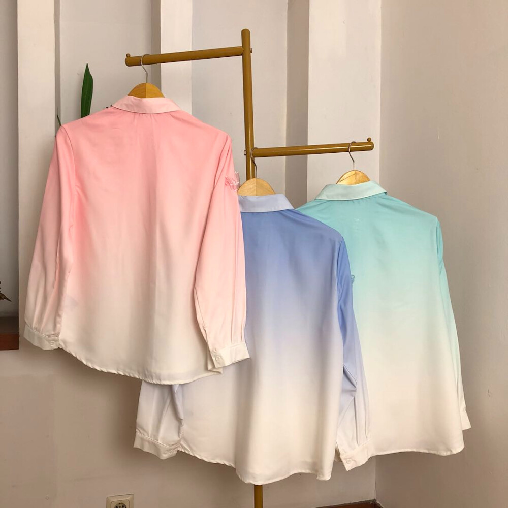 Atasan Kemeja Wanita Muda Lengan Panjang | Warna Pink/Biru/Hijau | Original By Casualtopin | Desain Gradasi |