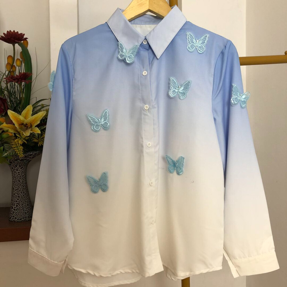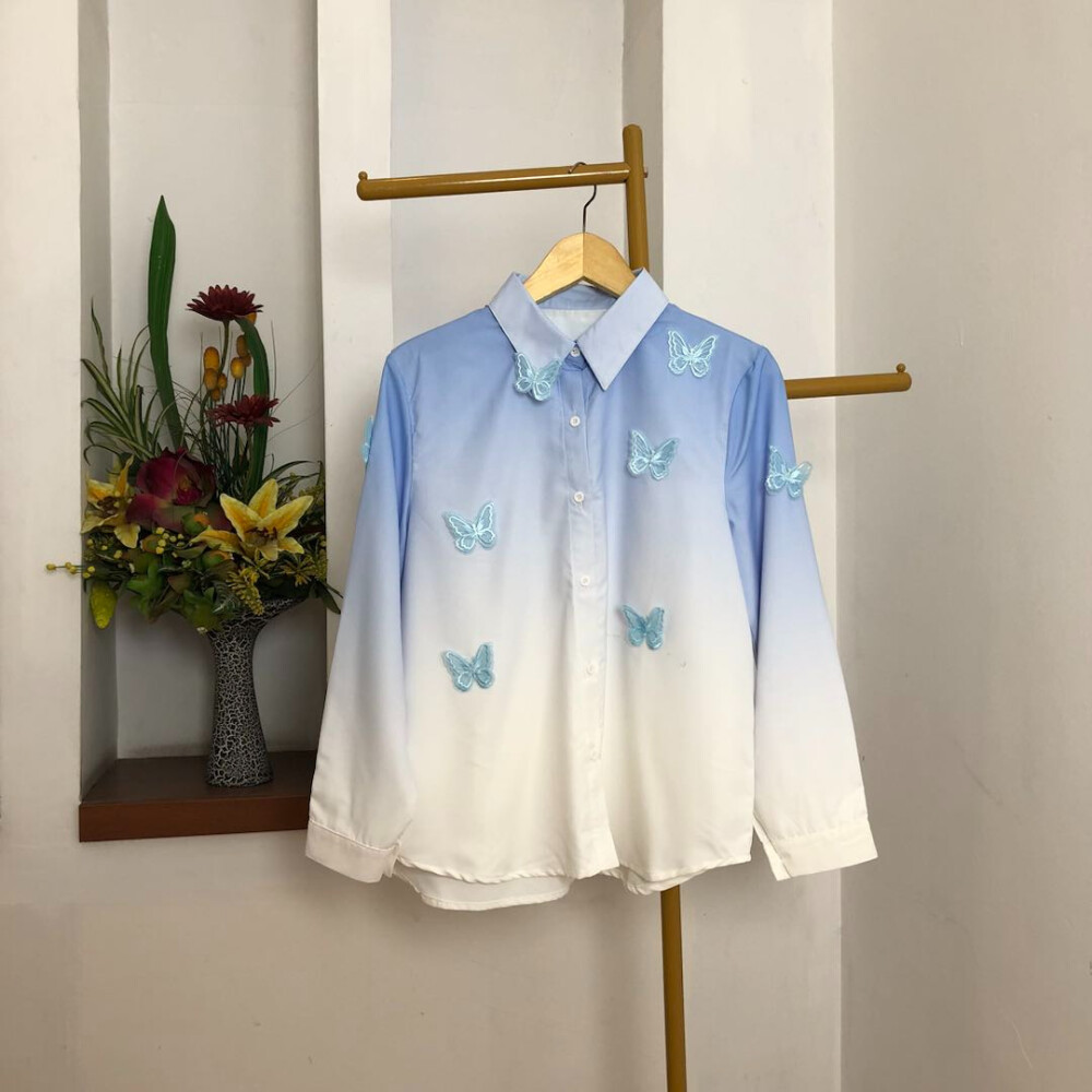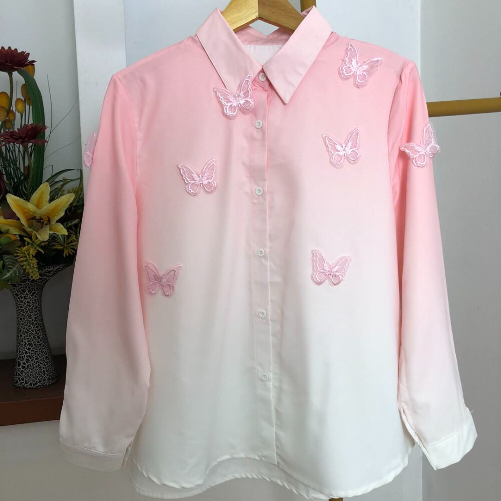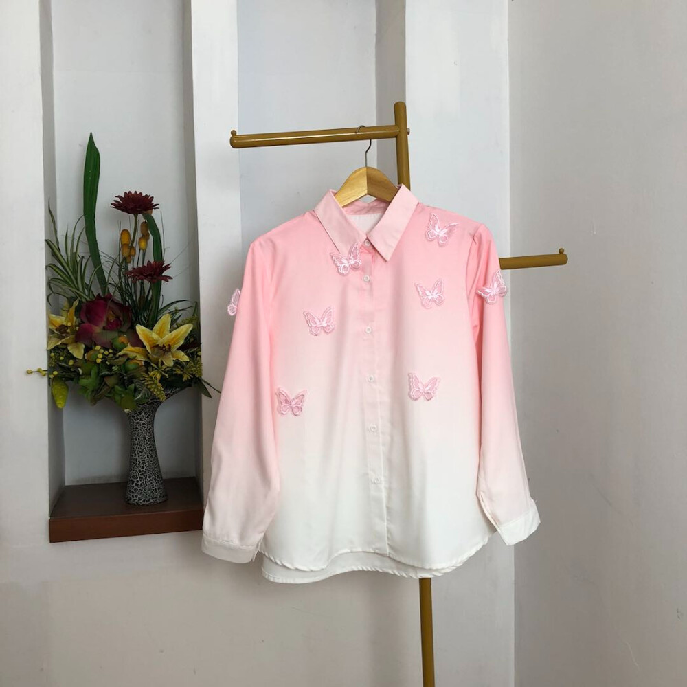 Atasan Kemeja Wanita Muda Lengan Panjang | Warna Pink/Biru/Hijau | Original By Casualtopin | Desain Gradasi |