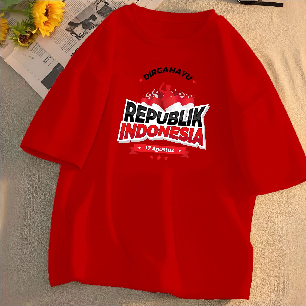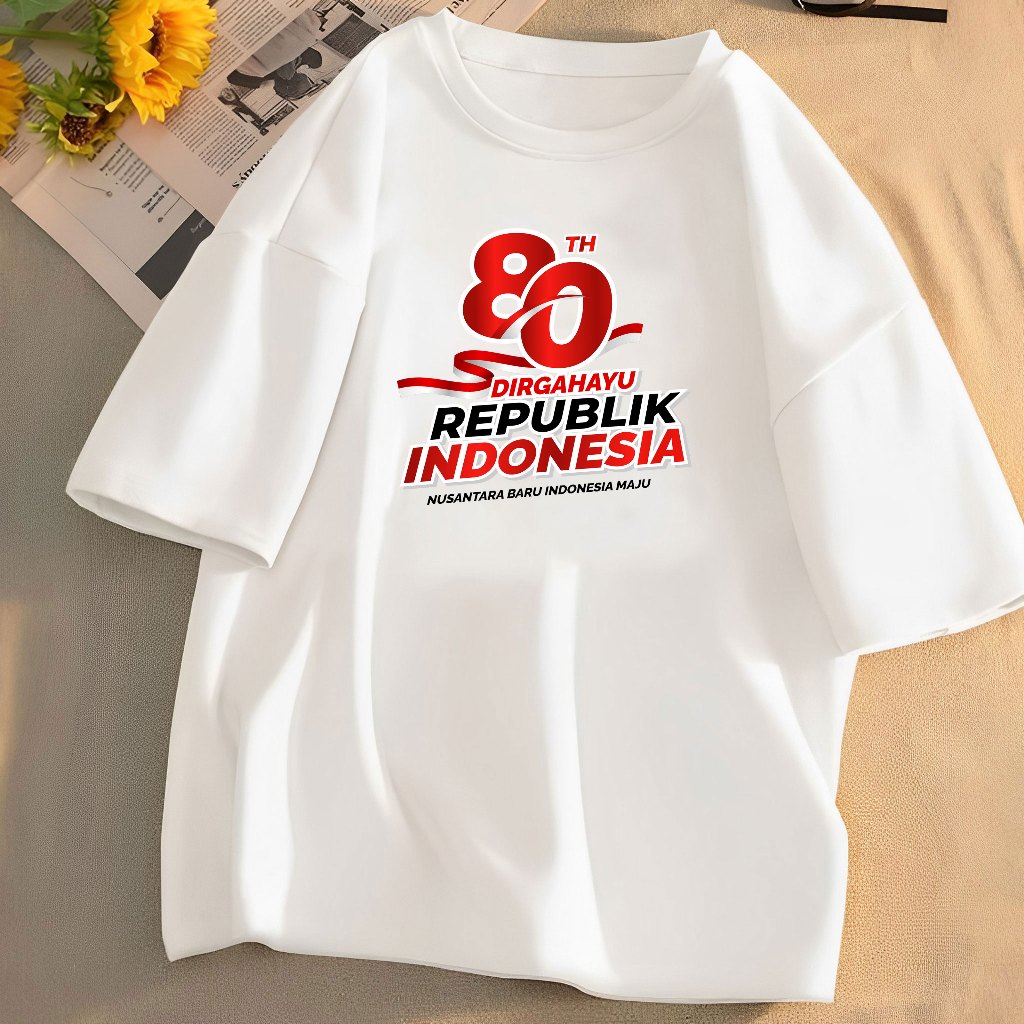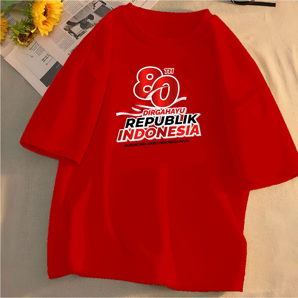 Baju Kaos Pria Wanita Dewasa 17 Agustus HUT RI 80 Kemerdekaan Dirgahayu Republik Indonesia Kaos Merah Putih Lengan