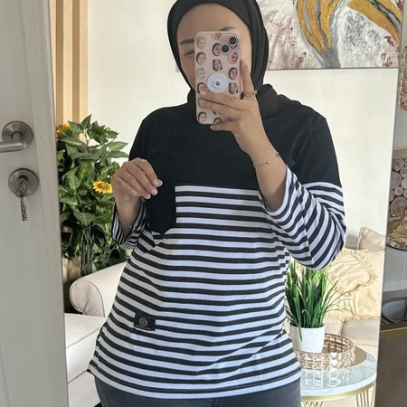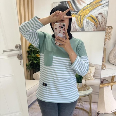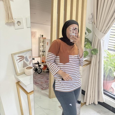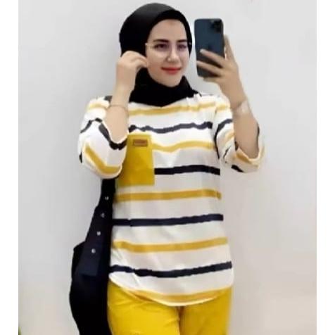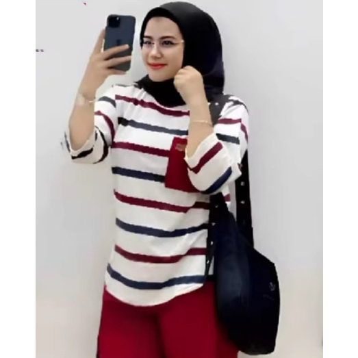 Kaos Wanita Setrip Lengan Panjang / Kaos Wanita Lengan Panjang Striped Top Atasan Wanita Lengan Panjang Salur Belan