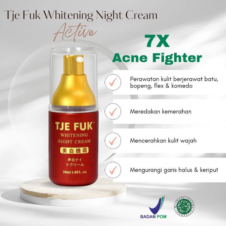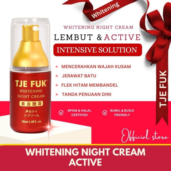 krim wajah bpom TJE FUK Whitening Night Cream Active 30ml - Krim Malam | Night Cream Whitening | Mencerahkan | Lawan Je