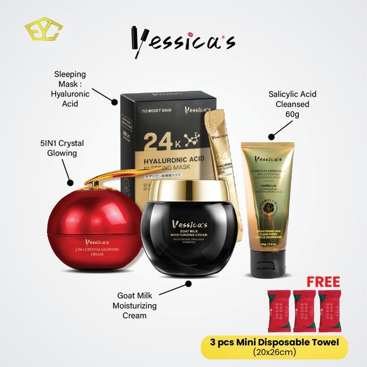 krim wajah bpom FYC - Yessica's Face Wash 60gr + Goat Milk Moist + Crystal Glowing Cream + Sleeping Mask Bonus 3 Pcs Di