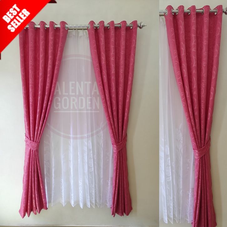 Gorden Minimalis Gorden jendela minimalis pintu kamar motif bunga tirai gordyn smokring warna pink muda