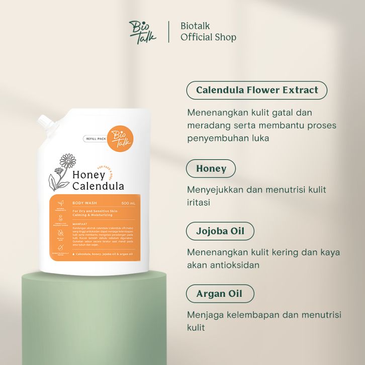 sabun jerawat punggung NEW LAUNCH Biotalk Refill Pack Honey Calendula Body Wash | 500 ml | No SLS/SLES | Sabun Mandi Ca