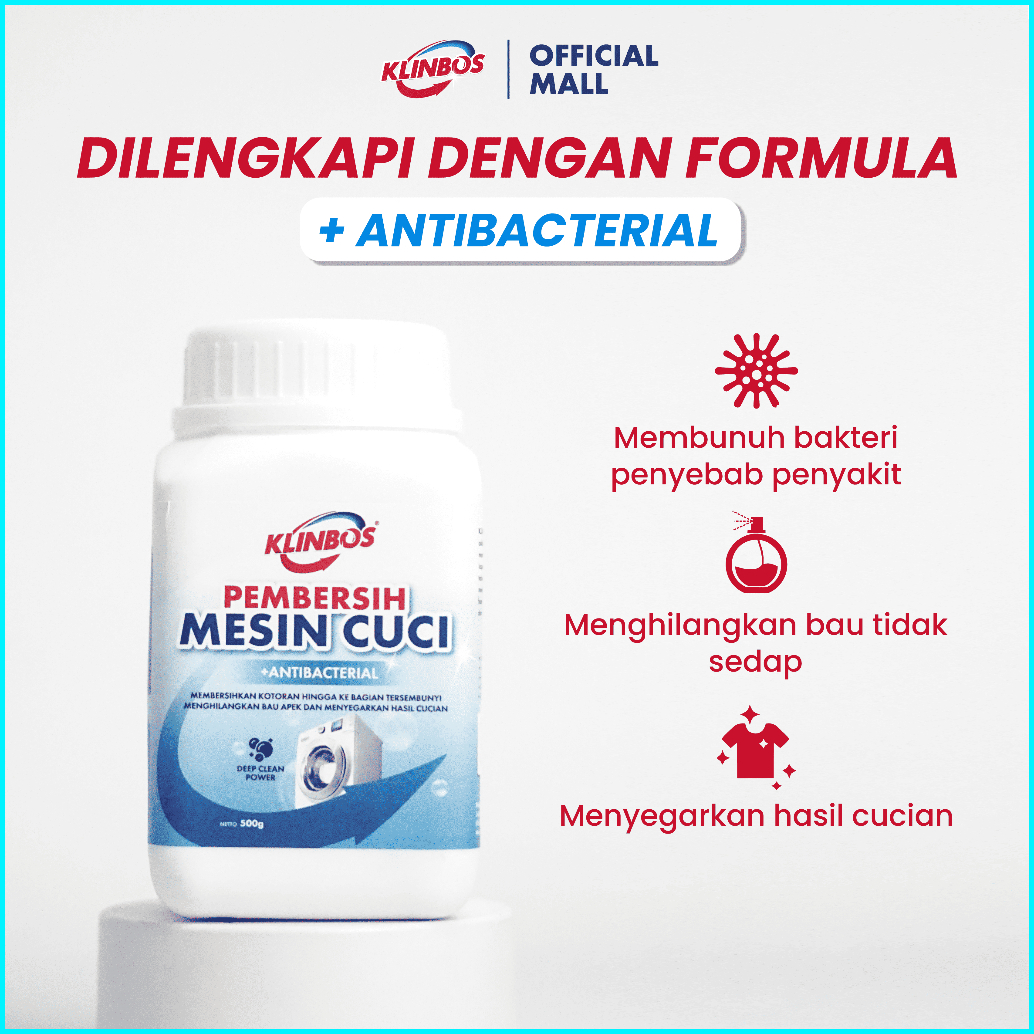Klinbos Pembersih Mesin Cuci Antibakteri - Washing Machine Cleaner Solusi Mesin Cuci Bau Dan Mesin Cuci Macet 500 Gram
