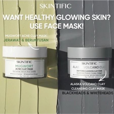 masker acne MFI - SKINTIFIC Mugwort Acne / Alaska Volcano Clay Mask | Netto 55g | Masker Wajah