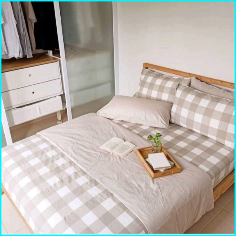 Sprei Aesthetic Viral Motif Kotak Kotak Uk. 120 160 180 200 Emily Sries