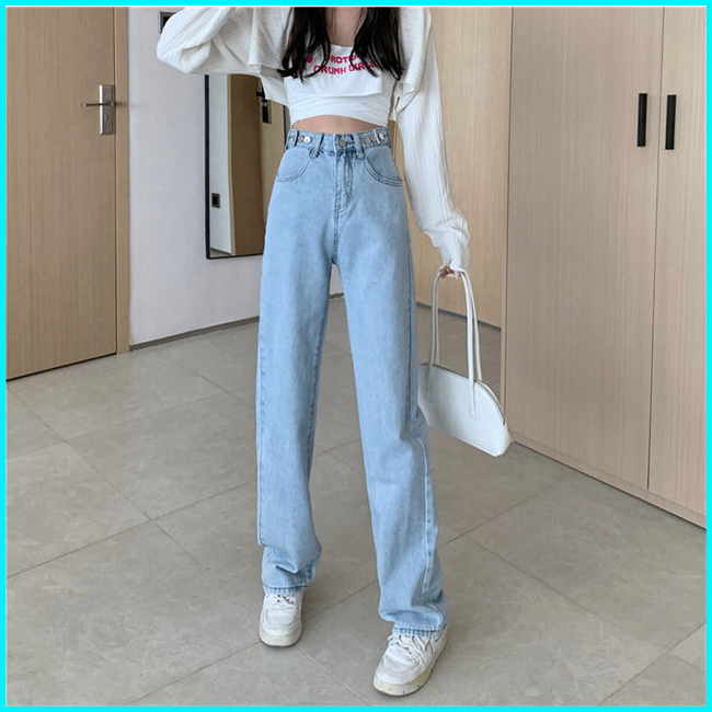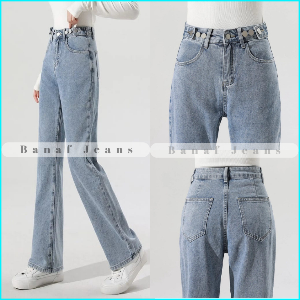 Celana Highwaist Jeans Wanita Adjustable Non Stret Pinggang Dapat Di Sesuaikan