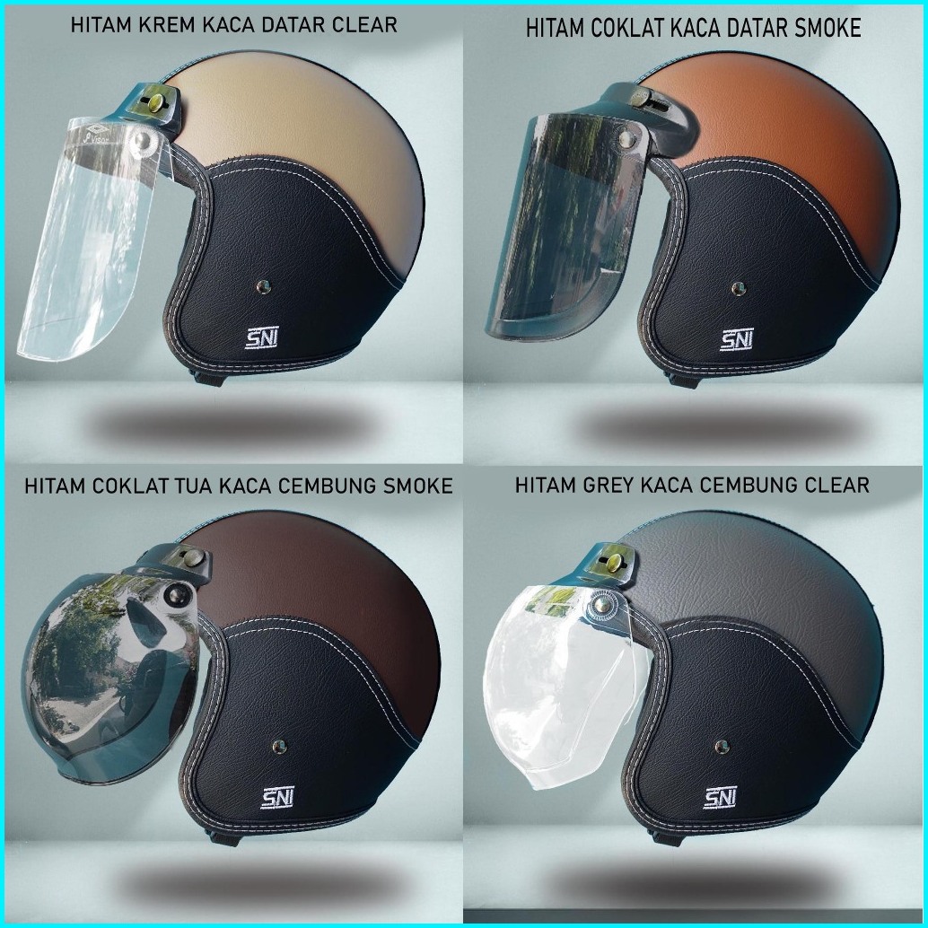 Helm Bogo Retro Full Leher Dewasa Premium Sni Bogo Kulit