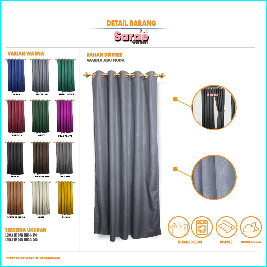 Navy 200, Maroon 200, Ping Fanta 200, Kubus 200, Krem 200, Ungu 200, Hitam 200, Abu Muda 200, Abu Tua 200, Cokelat Muda 200, Cokelat Tua 200, Army 200, Hijau Botol 200, Navy 150, Ping Fanta 150, Maroon 150, Krem 150, Kubus 150, Hitam 150, Ungu 150, Abu Tua 150, Abu Muda 150, Cokelat Tua 150, Cokelat Muda 150, Hijau Botol 150, Army 150