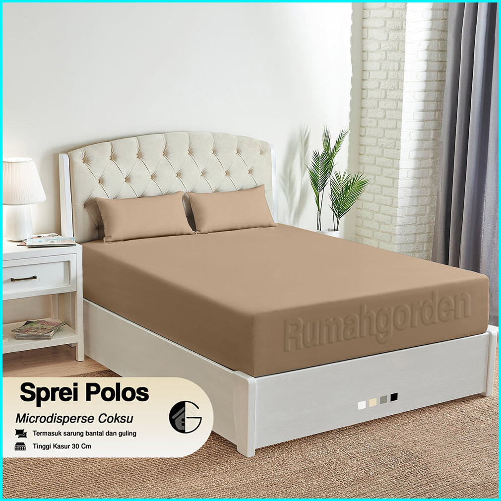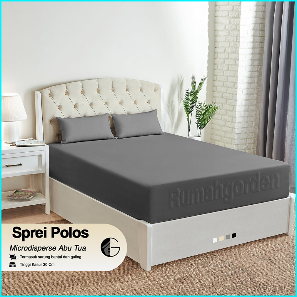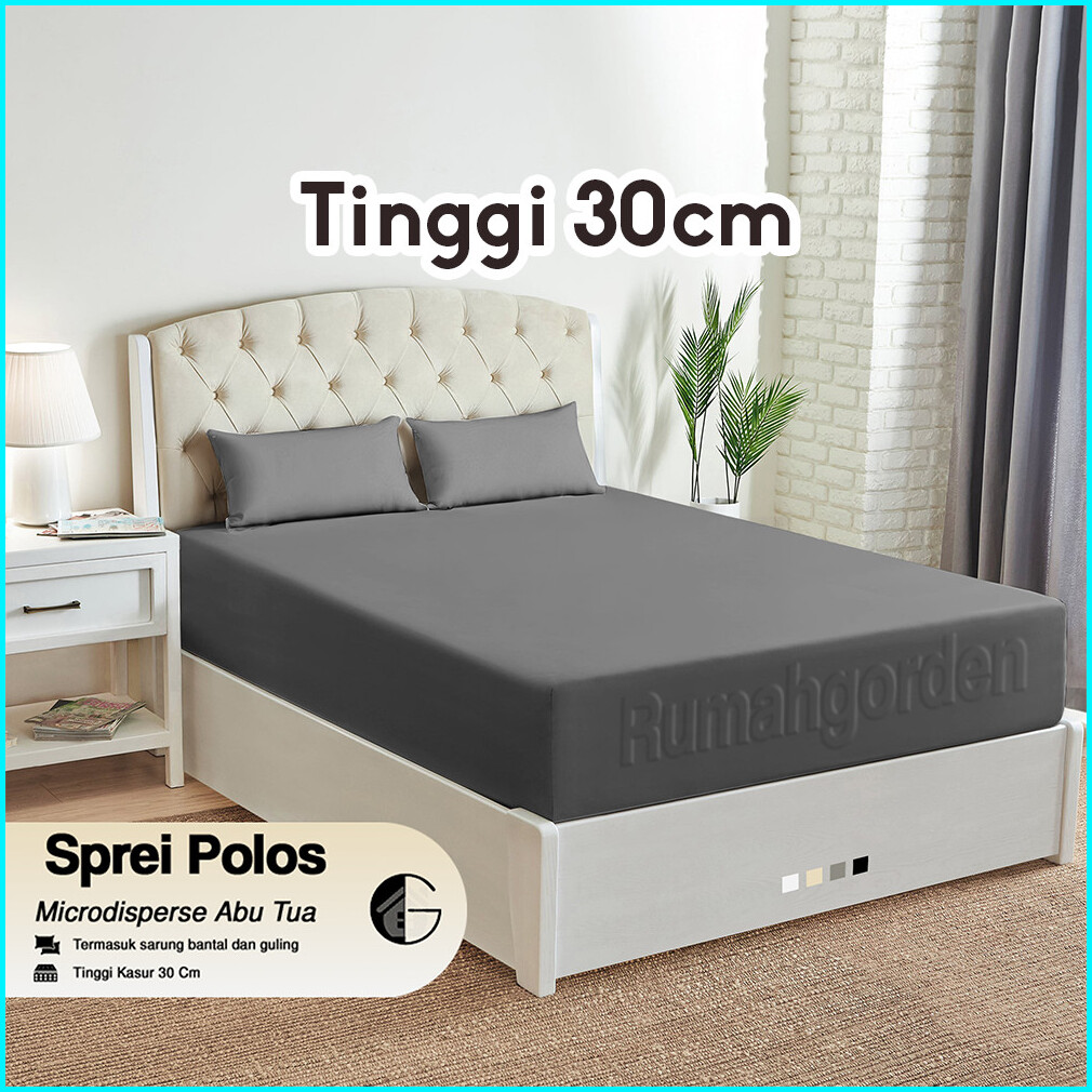 Tinggi 30cm Sprei Polos Set Anti Geser Double Karet Ukuran 200x200 180x200 160x200 120x200cm
