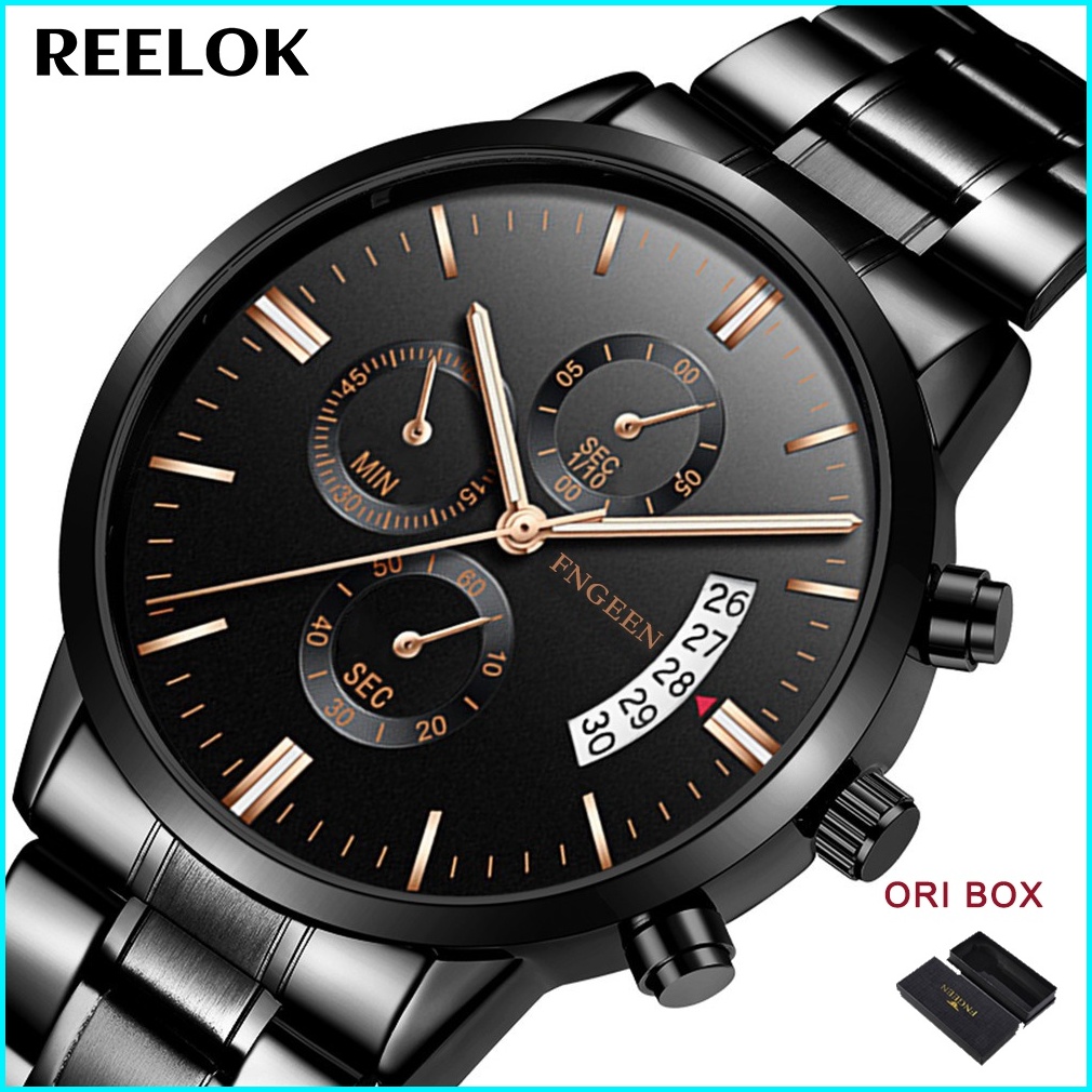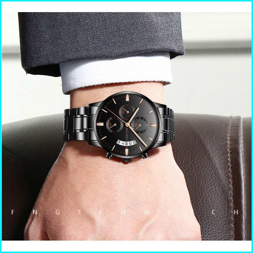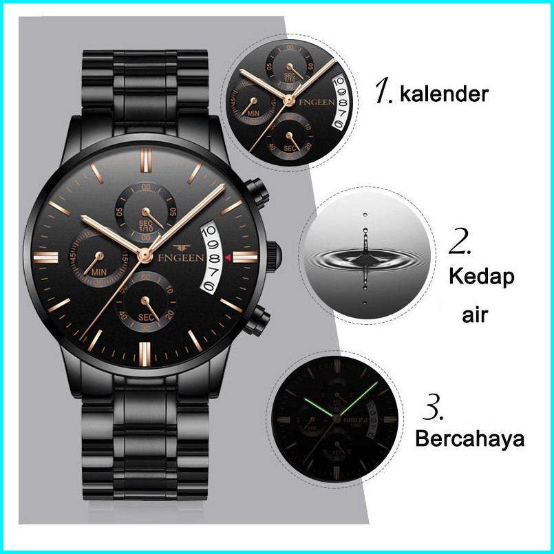 Fngeen 5055 Jam Tangan Pria Luxury Stainless Steel Quartz Original Anti Air Watch Kotak Gratis