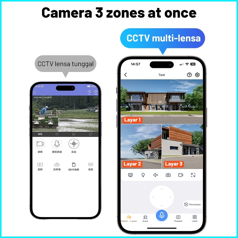 Hotupupin Cctv Wifi Outdoor 6mp Triple Screen Camera Dual Kamera Cctv Wifi Jarak Jauh Lewat Hp