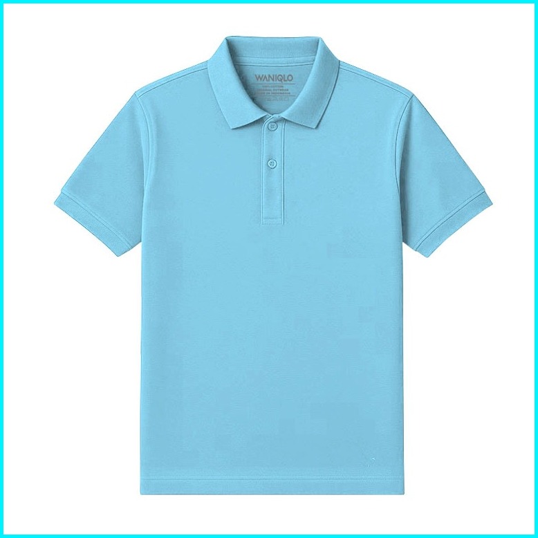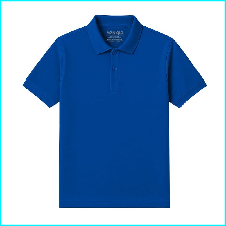 Waniqlo - Polo Shirt Kerah Polos Unisex Pria Wanita Biru