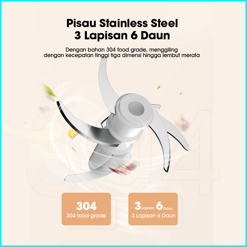 Samono Food Chopper Mpasi 150watt Mini Chopper Multifungsi 300ml Portable Stainless Steel Anti Karat Sw-c150