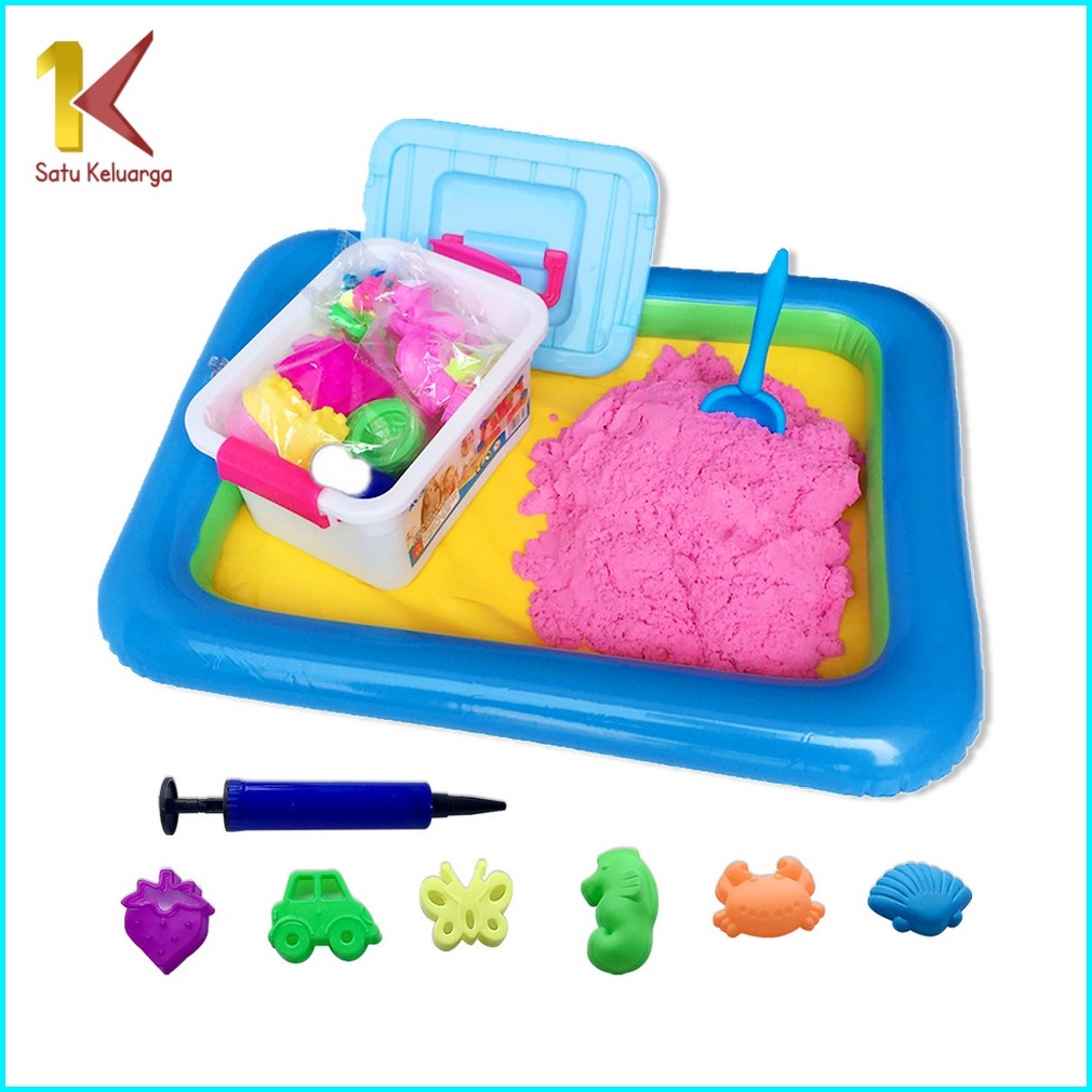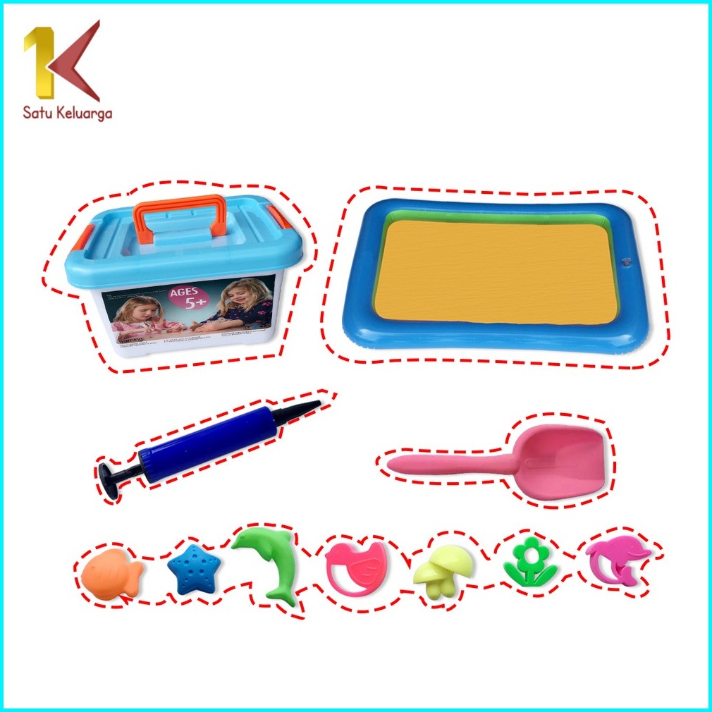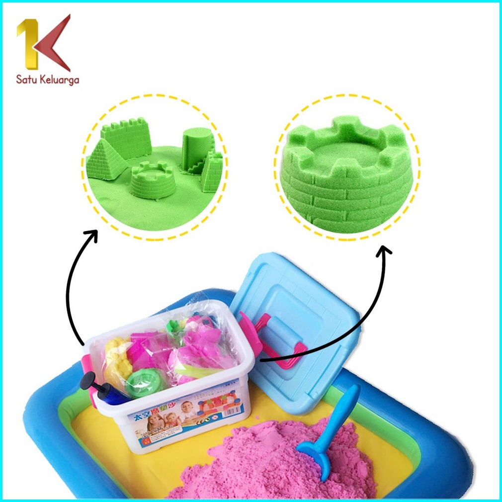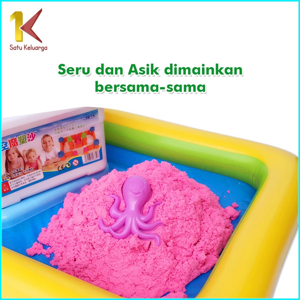 Satu Keluarga Mainan Pasir Ajaib Set M180 Magic Sand 1.5kg 3 Warna Sekop Cetakan Pasir Ajaib Box Container