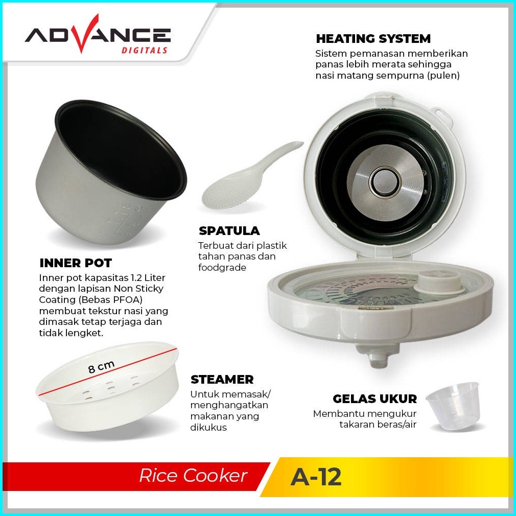 Garansi 1 Tahunadvance A-12 Rice Cooker Mini 1.2l Penanak Nasi Serbaguna 3 In 1 Magic Com