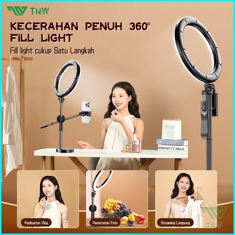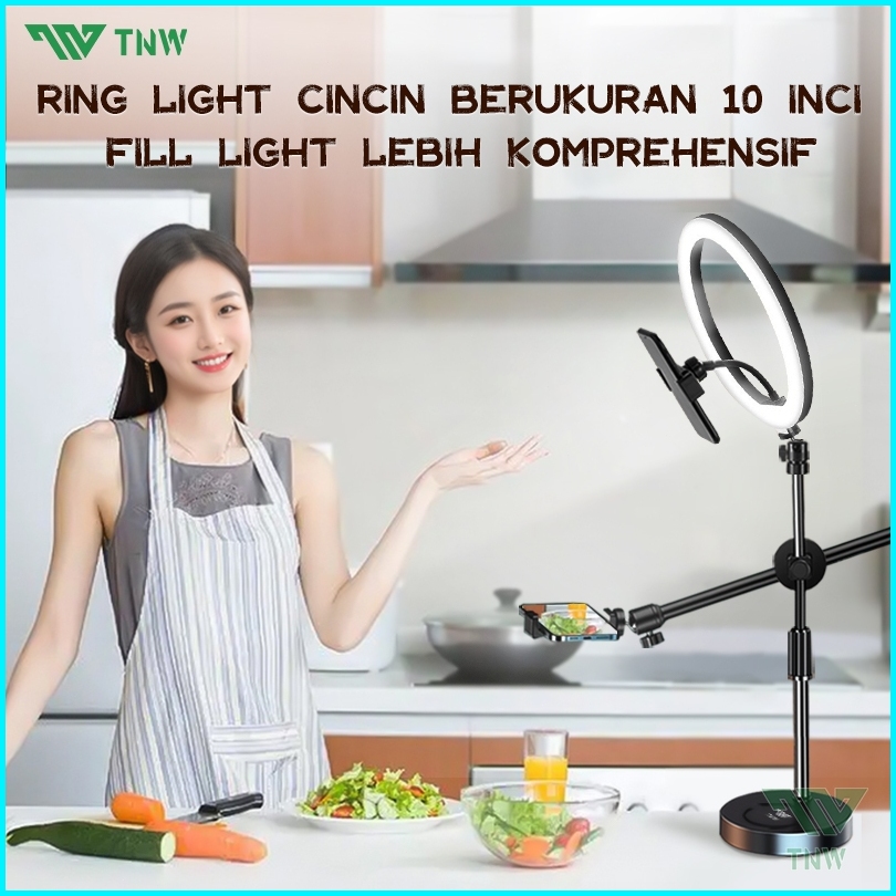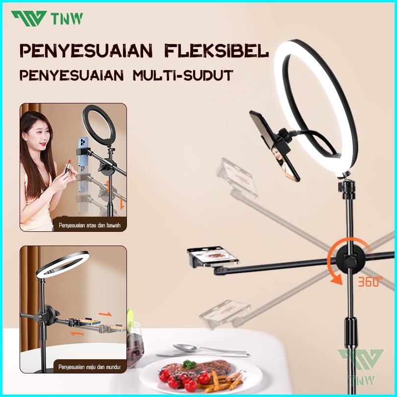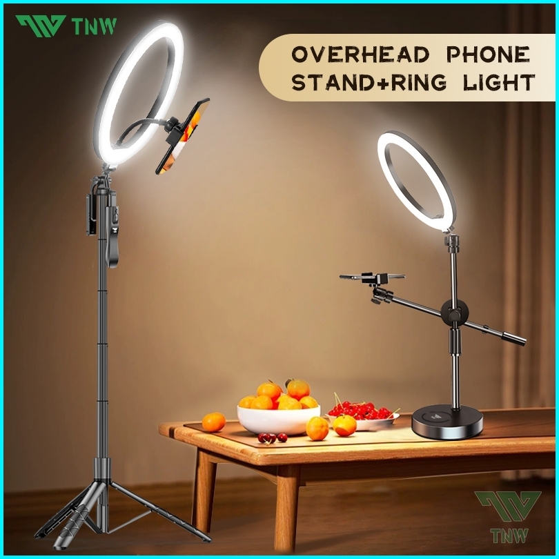 Tnw Overhead Phone Stand Led Ring Light Phone Holder Stand Holder Bracket 360 Lampu Fotografi Untuk Shooting Video Vlog