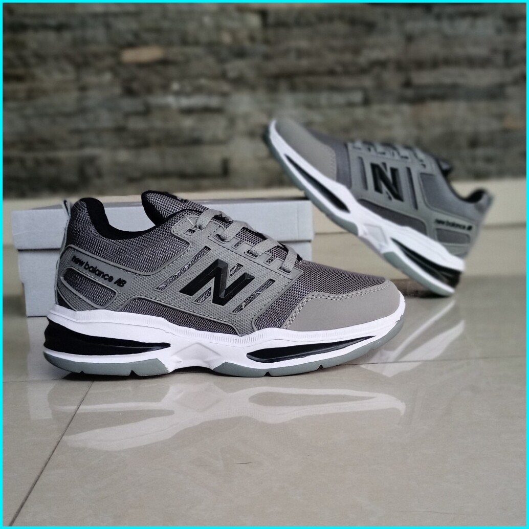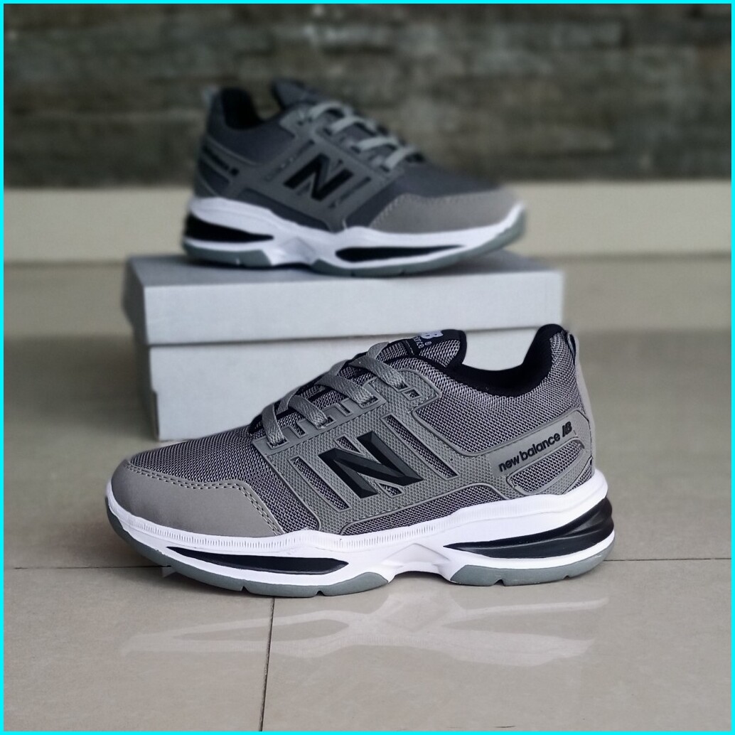 Sepatu Sneakers Running Pria Wanita Korea Style Abu Lis Hitam Sepatu Olaharaga Senam Joging Badmintomn