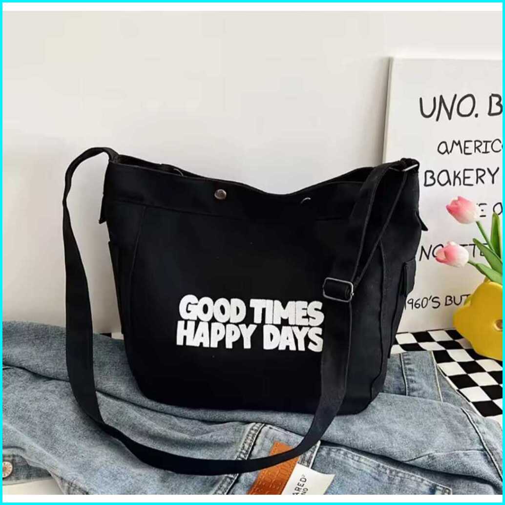 Kenzie Slingbag Kasual Kanvas Blossom Happyday Tasslempang Kuliah Bahan Canvass Shoulderbag Casual