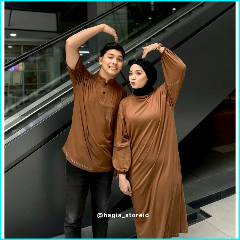 Jannah Couple By Hagia Sudah Sepasang Dress Dan Koko Pria Overdeck Bahan Kaos Combed