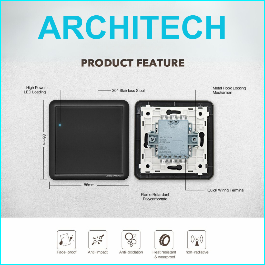 Architech Saklar Listrik A23 Dynamic Sakelar Lampu Architech Dynamic Black A23 Saklar Mewah Saklar Modern Saklar Matt Bl