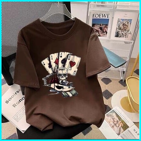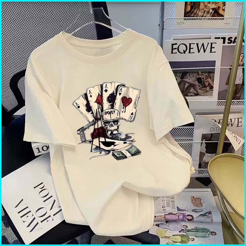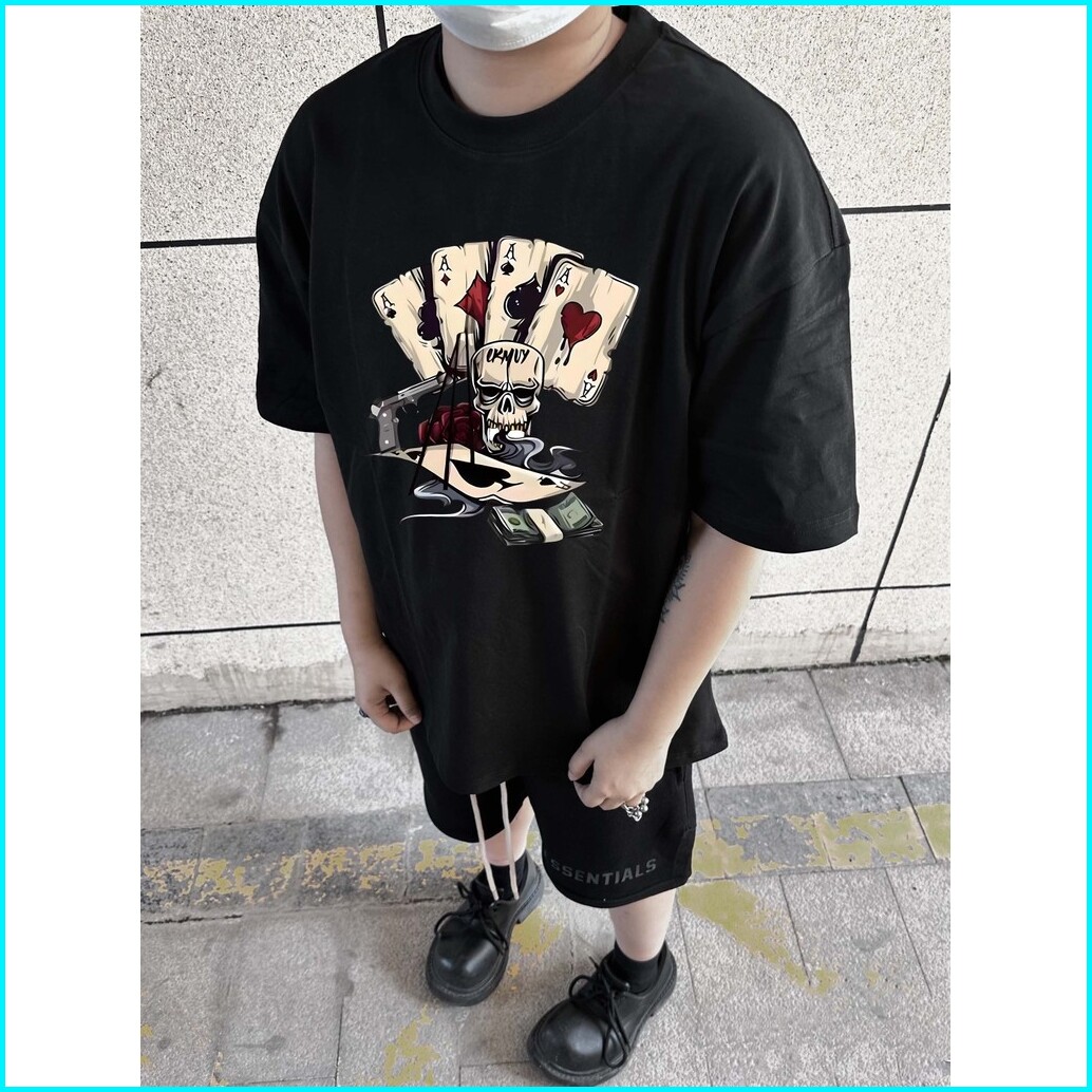 Cetakan Tengkorak Poker Retro Baju Oversize Pria Kaos Pria Terbaru 2024 Kaos Cotton Combed 30s Kaos Cowok Distro Origina