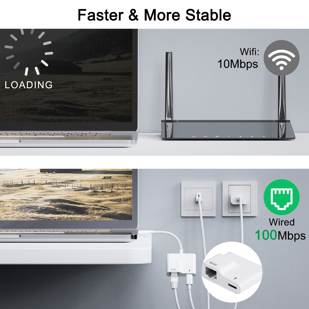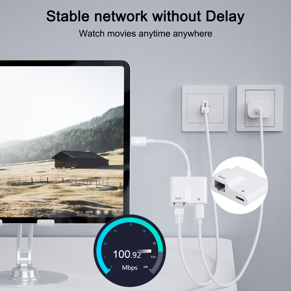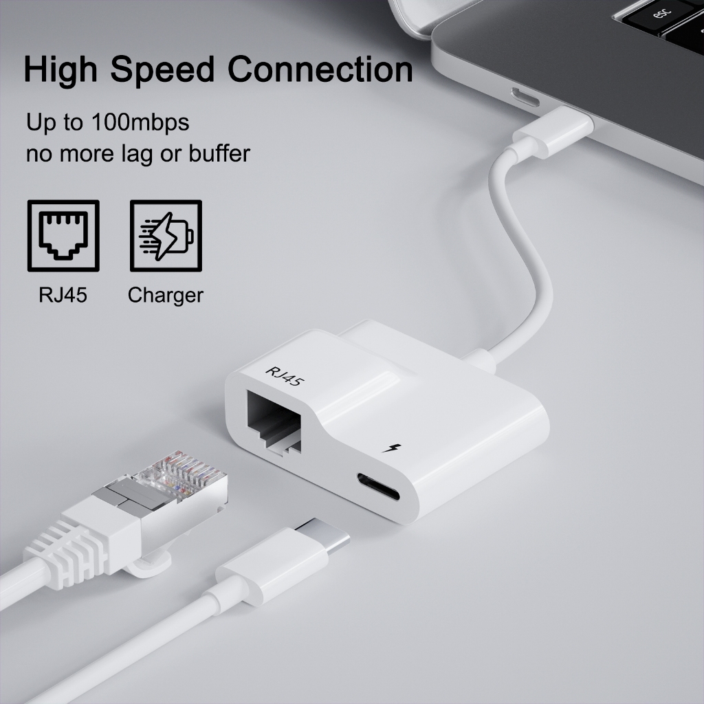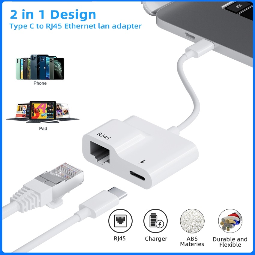 Adapter Type C to RJ45 Ethernet lan adapter/Cable,Pad to RJ45 Ethernet lan adapter with power charging port Support 100M