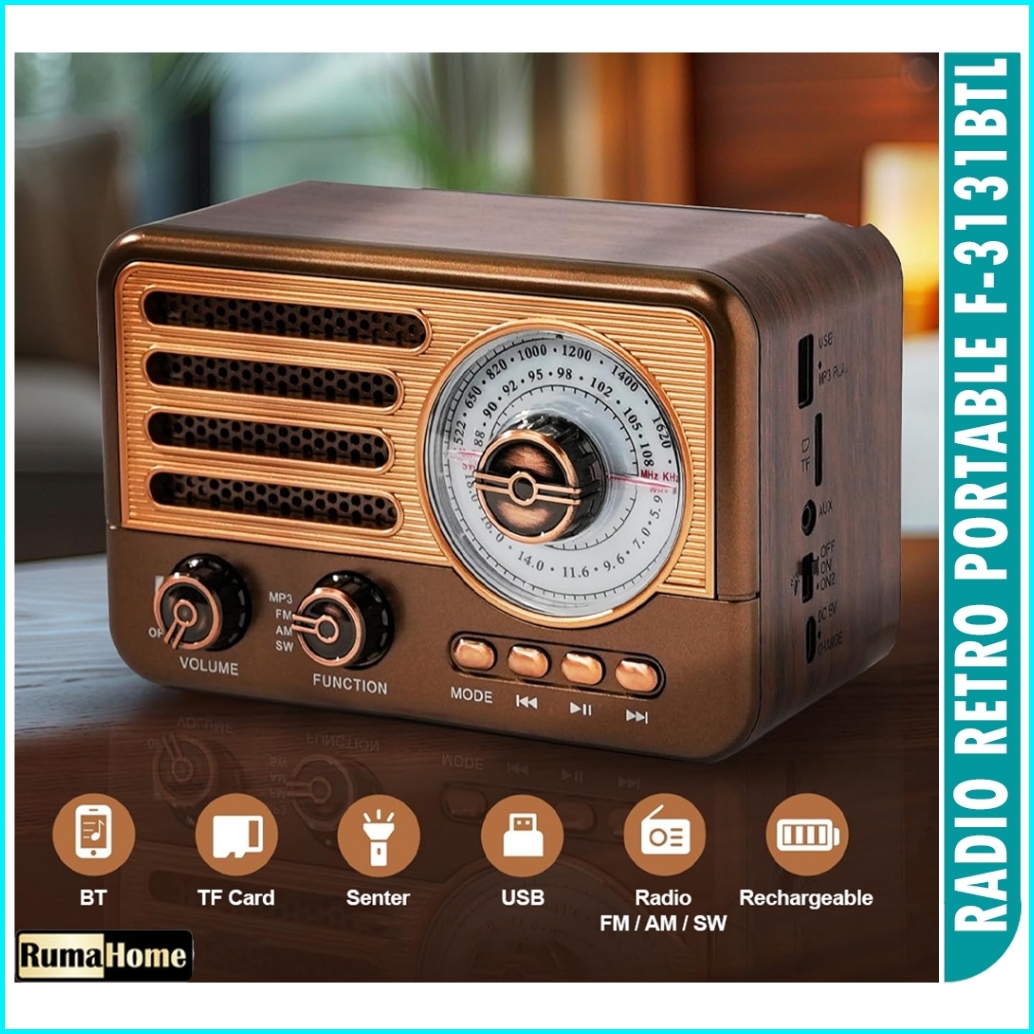 Radio Antik Retro Portable Speaker Ngebass Fm Am Sw Tf Usb Garansi