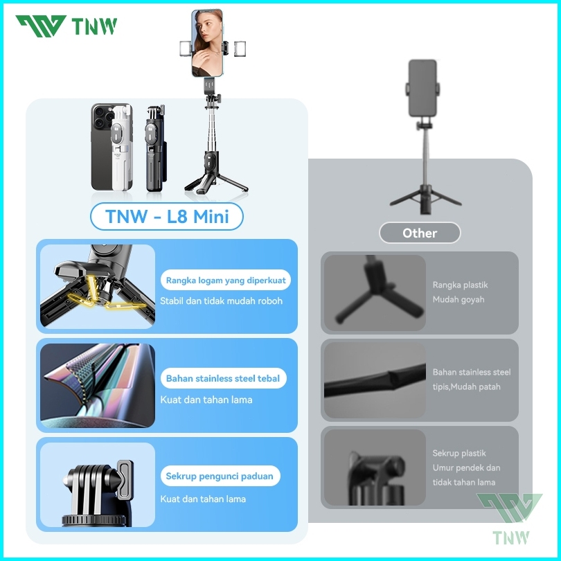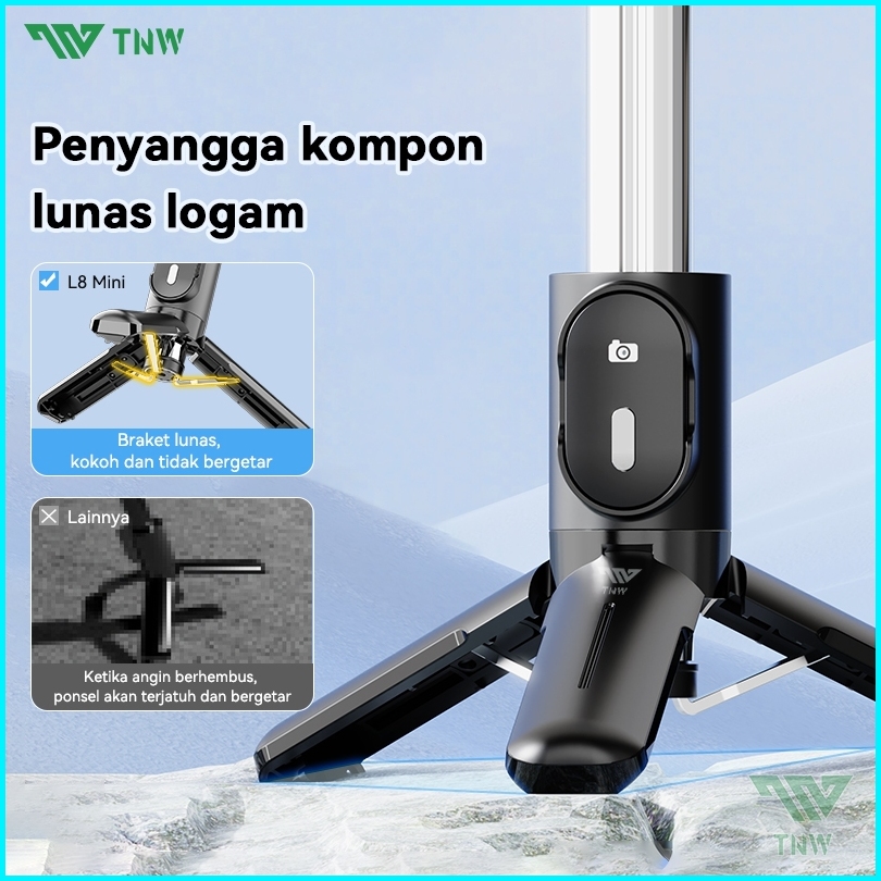 Tnw L8mini Tongsis Bluetooth Tongsis Tripod Mini Selfie Stick Remote 3 In 1 Tongsis Portable Led Fill Light