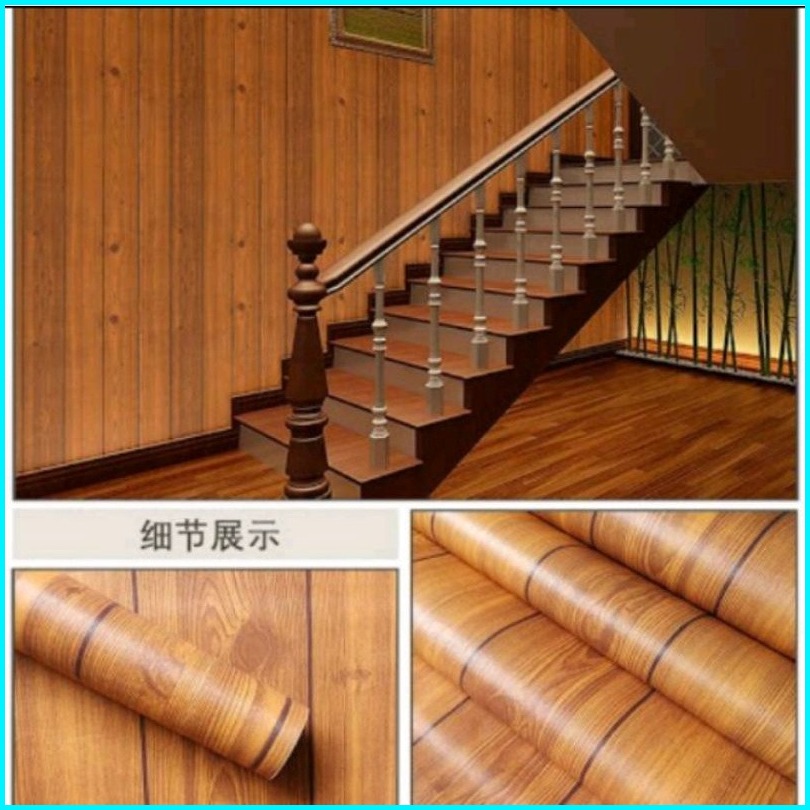 Wallsticker Wallpaper Dinding Kayu Coklat Pekat Walfafer Dingding Lemari Tangga Ukuran 45cm X 1m