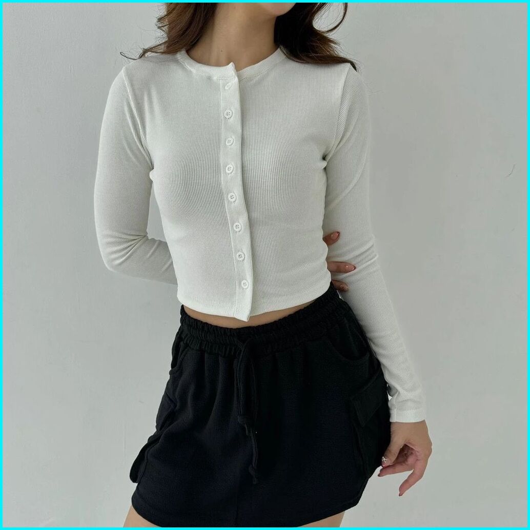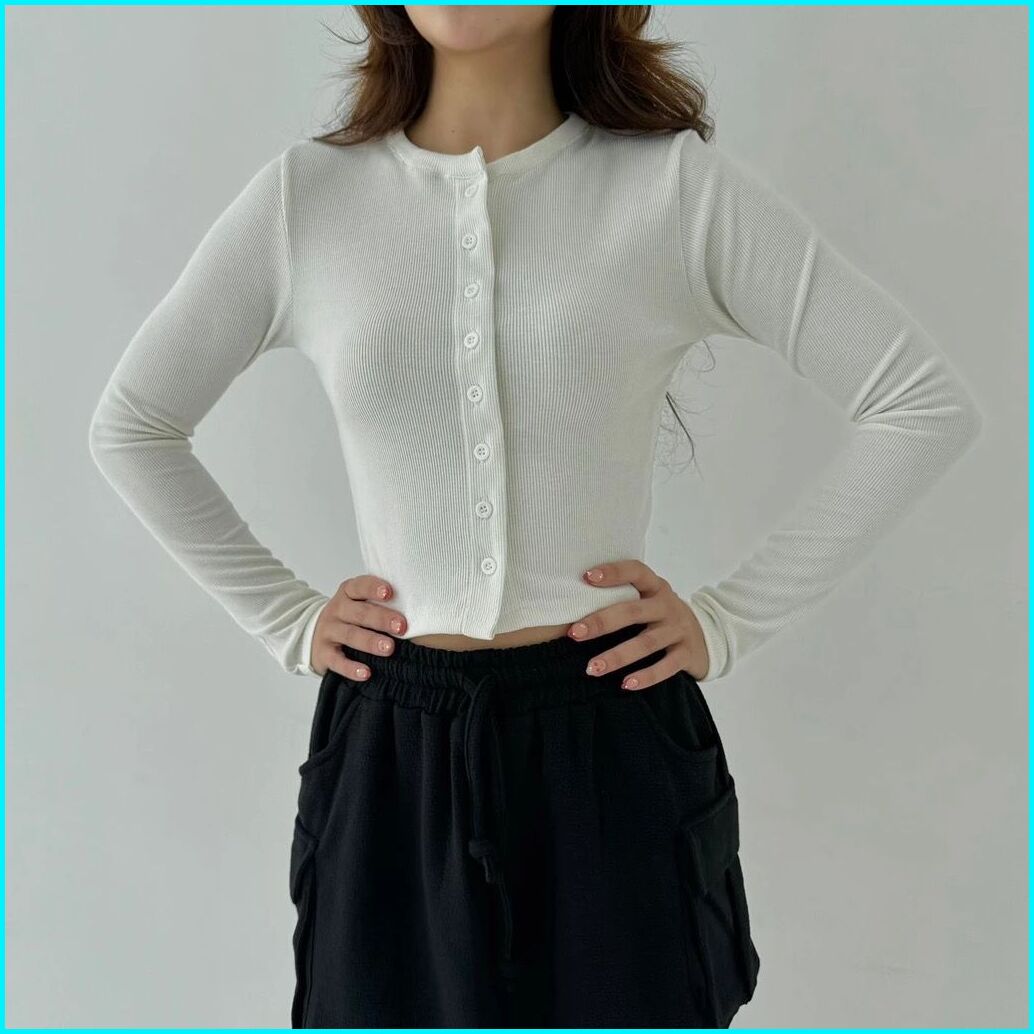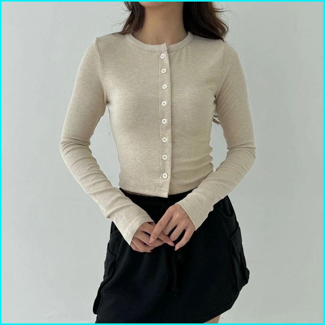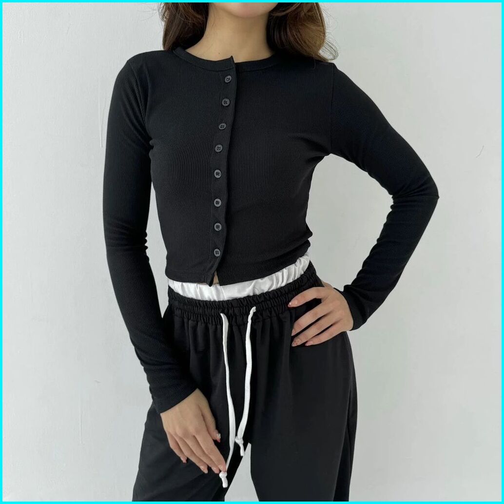 Virgo Crop Top Atasan Wanita Korean Style Top Baju Knit Lengan Panjang Basic Long Sleeve