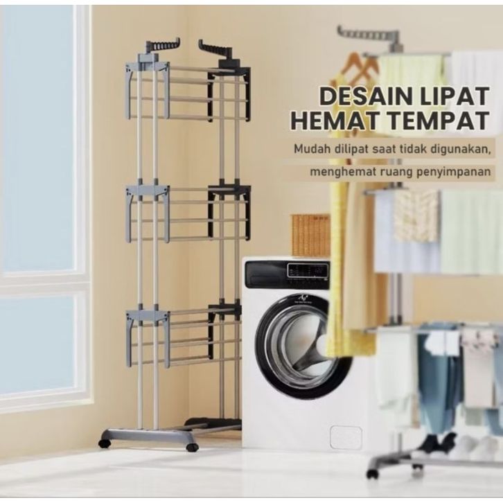 Jemuran Baju Jemuran Pakaian Jemuran Korea 24 Baris + 14 Slot Hanger Jemuran Handuk B4j4 Coating Gantungan Baju Rak