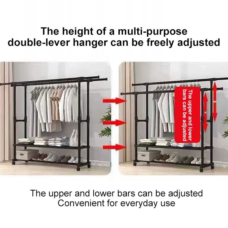 Jemuran Baju Jemuran Pakaian Rak Gantungan Baju Single & Double Iron Minimalis - Stand Hanger Double Sisi Portable