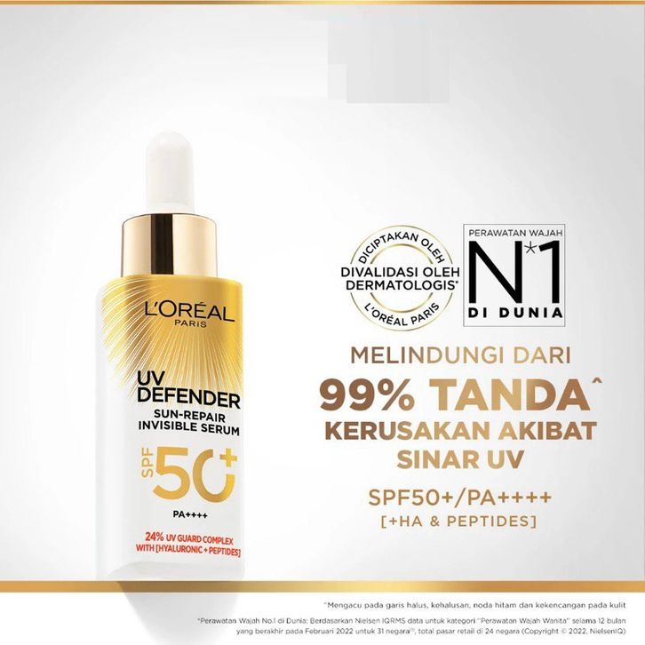 L'Oreal Paris UV Serum Sunscreen SPF 50+ PA++++ - UV Defender Sun-Repair Invisible Serum 2-in-1 Skincare 30ml