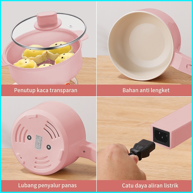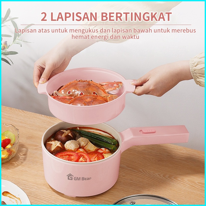 Gm Bear Panci Listrik Serbaguna 2l 2315 - Kompor Listrik Panci Penggorengan Listrik Panci Elektrik Free Steamer Pink