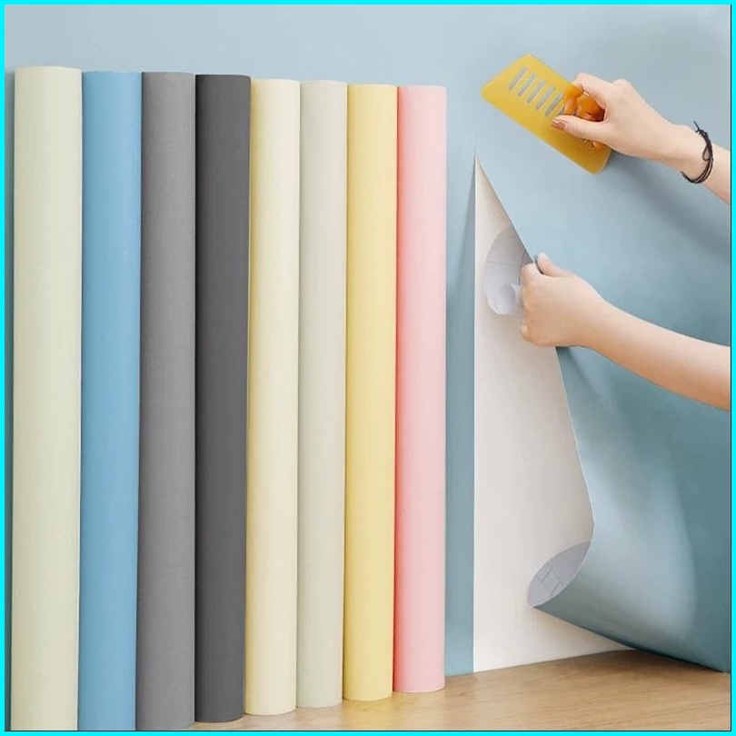 Wallstiker Wallpaper Dinding Polos Putih Anti Air Welpeper Dingding Kantor Kabinet Warna Hijau Krem