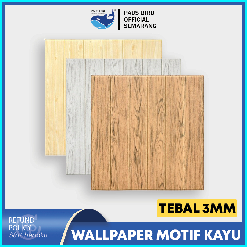 Paus Biru - Wallpaper 3d Foam 70cm X 70cm Motif Kayu Wood Vintage Dekorasi Dinding Kamar Cafe