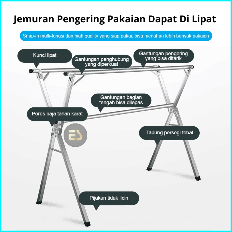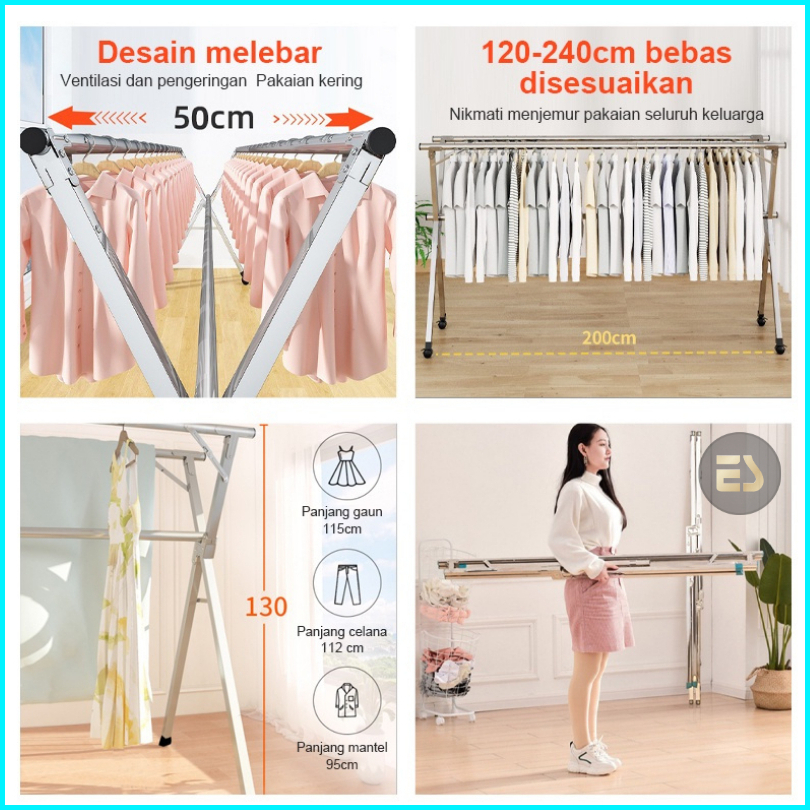Es Jemuran Baju Lipat Tiang Jemuran Pakaian Kuat Tempat Jemuran Baju Portable Gantungan Baju