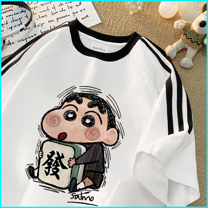 Forteid Cetakan Merek Trendi Retro Baju Oversize Pola Crayon Shin-chan Menjadi Kaya Korean Style Kaos Longgar
